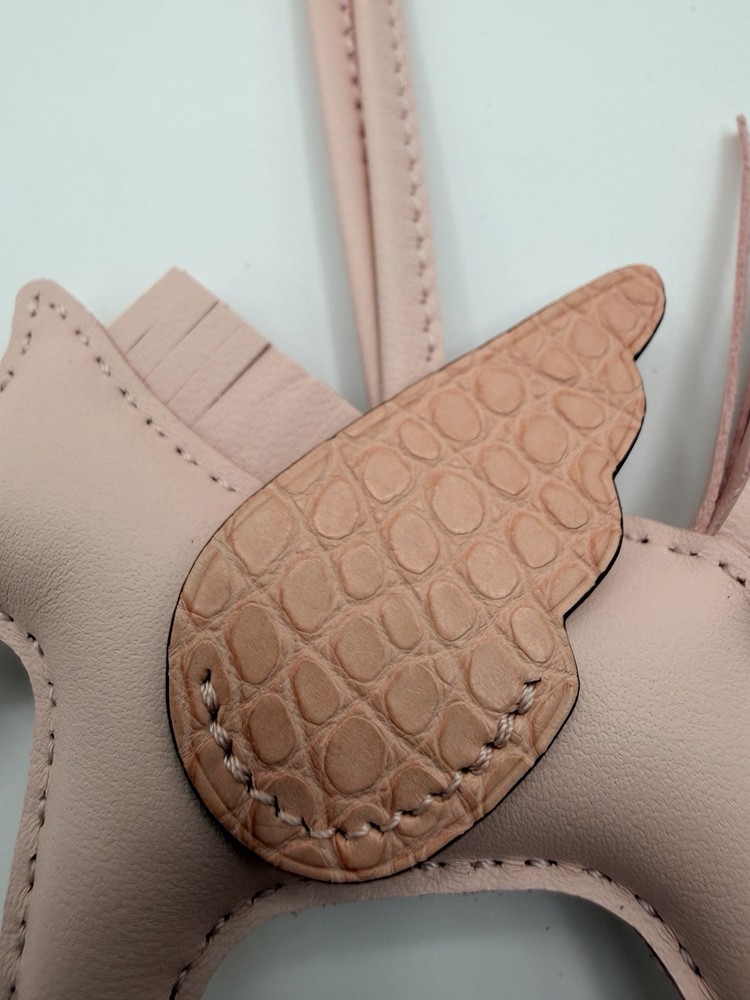 The Hermes Pegasus Bag Charm in pink is a luxurious handbag accessory that adds a touch of elegance to any outfit. Made from high-quality leather, this charm features a rodeo theme and is crafted with lambskin and swift calfskin fabric. Its lightweight design makes it convenient to carry around, perfect for adding a stylish touch to your handbag anytime, anywhere. This accessory is a chic and fashionable gift for any woman who appreciates fine craftsmanship and exquisite design.