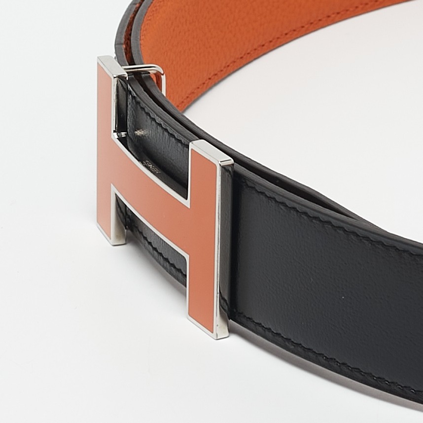 Hermès’ Qiuzz H belt offers reversible styling with Noir Box leather on one side and vibrant orange Togo leather on the other. Slim and versatile, it’s a refined accent for everything from high rise trousers to wrap dresses. A practical and chic nod to the house’s dual tone mastery.Certified by The Luxury Closet - This item has gone through a detailed authentication process overseen by our experts. We offer a lifetime guarantee of authenticity on all our items. Import duties, taxes and charges are not included in the item price. These charges are the buyers responsibility. Please check with your country’s customs office to determine what these additional cost will be prior to buying. Our eBay Store About Us Contact Us Add to Favorite Sellers Hermès Noir/Orange Box and Togo Leather Qiuzz H Reversible Belt 80 CM $518.1 Hermès’ Qiuzz H belt offers reversible styling with Noir Box leather on one side and vibrant orange Togo leather on the other. Slim and versatile, it’s a refined accent for everything from high rise trousers to wrap dresses. A practical and chic nod to the house’s dual tone mastery. Product Details Brand Color Black Dimensions Material Leather Size 80 CM Outsole Width Outsole Length Heel Height Includes Certified by The Luxury Closet This item has gone through a detailed authentication process overseen by our experts. We offer a lifetime guarantee of authenticity on all our items. How We Check The in-house team of experts at The Luxury Closet is highly trained to verify the authenticity and the condition of the luxury products. They ensure that only 100% authentic items are put on sale.The evaluation process is unique with its own mix of assessment criteria and differs according to the category. Each item is evaluated based on the following combination of hallmarks, hardware, stitching, symmetry, material, craftsmanship, stamping, codes, hologram stickers, and packaging. Our authenticators also check if the items have been modified or amended (e.g., aftermarket diamonds, replaced batteries, repaired bags, etc.) International Buyers Import duties, taxes and charges are not included in the item price. These charges are the buyers responsibility. Please check with your country’s customs office to determine what these additional cost will be prior to buying.