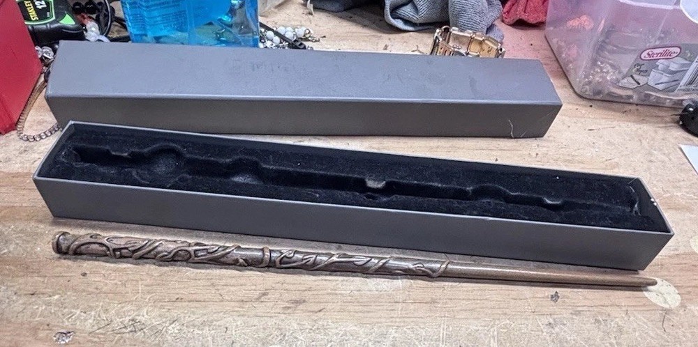 This product is a replica of Hermione Granger's wand from The Wizarding World of Harry Potter Universal Studios. The wand is an official collectible item inspired by the fantasy franchise created by J.K. Rowling. Made in China, this authentic piece comes in its original box, making it a must-have for fans of the Harry Potter series. Perfect for enthusiasts of magical and mythical worlds, this wand is a unique and special addition to any collection.
