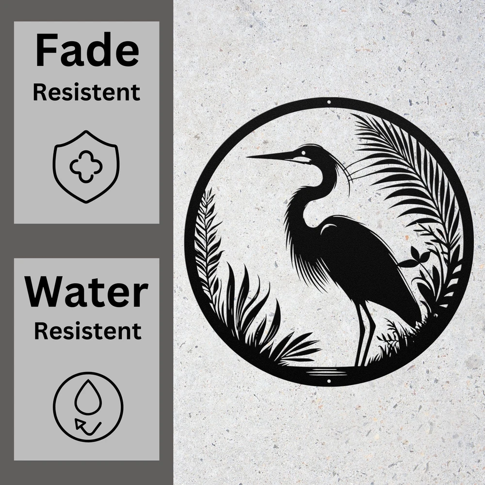 Product Description Heron Bird Metal Art Sign Home Decor Gift Indoor Outdoor Heron Lover Gifts Bring the beauty of nature into your home or garden with this Heron Bird Metal Sign . This elegant piece of wall art is crafted from 16-gauge high-quality metal, ensuring both strength and longevity. Featuring a detailed heron bird design, it adds a graceful touch to any space, whether it’s a living room, patio, or office. This custom metal sign is perfect for bird lovers, nature enthusiasts, or anyone looking to enhance their indoor or outdoor décor. The sign is powder-coated to provide protection against dust, weather, and water, making it suitable for both indoor and outdoor use. It can withstand the elements while maintaining its beauty, making it a great option for gardens, fences, or entryways. Whether you’re looking for a unique Christmas gift, a birthday present, or simply something special for yourself, this personalized heron metal sign is a stunning and thoughtful choice. Key Features: Material: Made from 16-gauge high-quality metal for durability and strength Finish: Powder-coated to resist dust, weather, and water Design: Custom heron bird design for a natural and artistic touch Versatile: Ideal for both indoor and outdoor use Gift Idea: Perfect for Christmas, birthdays, housewarmings, or special occasions Personalization: Can be customized to make it uniquely yours Size Options: Available in a variety of sizes to fit any space Easy Installation: Comes with pre-drilled holes for hassle-free mounting Enhance your home or outdoor space with the timeless elegance of this Heron Bird Metal Sign , a beautiful blend of art and craftsmanship. Service and Color Choice Our metal signs are designed to be personalized just for you, making them the perfect addition to any space! The default color for our signs is Black , but we also offer a variety of beautiful options including Copper, Gold, White, and Silver . After placing your order, simply contact us with your preferred color choice, and we'll ensure your sign is exactly how you envision it. Let’s create something special together!