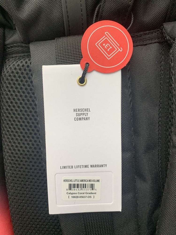 Elevate your style with this sleek Herschel Supply Co. Little America backpack in a striking Calypso Coral Gradient design. Crafted from durable polyester material, this backpack is perfect for everyday use and boasts a spacious mid-volume capacity to accommodate all your essentials. The black colorway adds a touch of sophistication to this unisex backpack, making it a versatile accessory for any fashion-forward individual. Featuring the iconic Herschel Supply Co. branding, this backpack is a must-have for any style-conscious person. The backpack boasts multiple compartments and pockets to keep your belongings organized, while the adjustable straps provide a comfortable fit. Whether you're heading to school or embarking on a weekend adventure, this Herschel Supply Co. Little America backpack is the perfect accessory to complete your look.