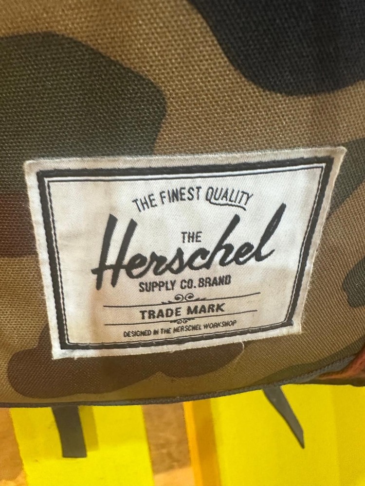 New with tags Herschel Supply Co. “Retreat” backpack in camo and navy blue (Peacoat) with tan trim. 19.5L capacity with internal padded fleece-lined sleeve fits laptops up to 15”. Features contoured padded straps, drawcord closure, magnetic buckle flap, and signature striped liner. Model: 10066-04107 Original retail $90.