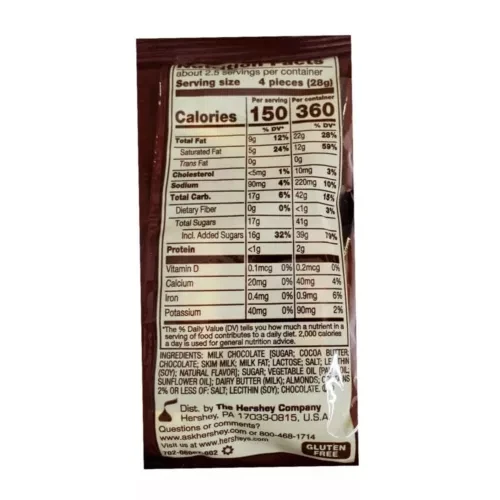 Enjoy Hershey's Heath Miniatures Candy Bars' rich, creamy flavor. Milk Chocolate English Toffee Can. These chocolate covered nut treats come in a pack of one 2.1 ounce bag, perfect for sharing or satisfying your sweet tooth. The candy has a delicious milk chocolate flavor and is covered in a crunchy English toffee coating, making it a delectable treat for any occasion. Each bag contains 110 calories worth of candy, and the packaging dimensions are 7.13x5.35x1.46 inches, making it a convenient and portable snack. The candy is made by the renowned brand Heath and has an expiration date of BB 10 25. This item is a great addition to any pantry or sweet collection.