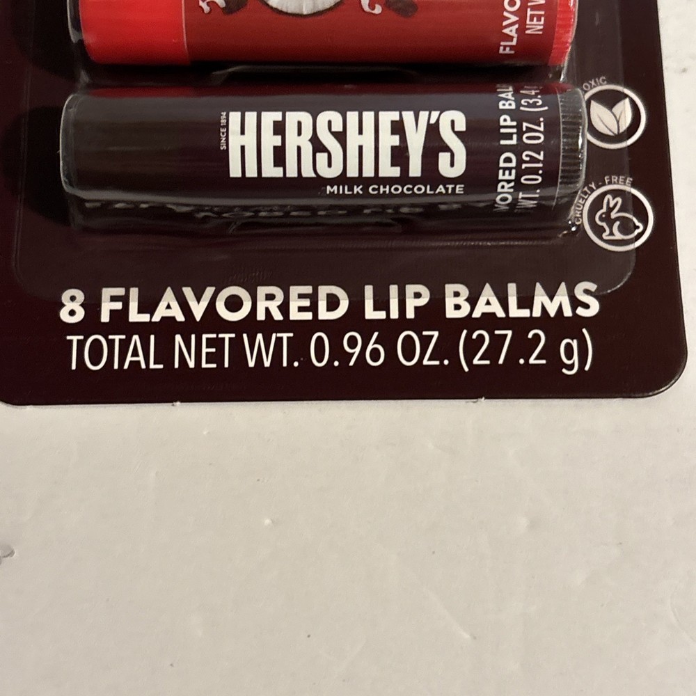 Hershey Flavored Lip Balm 8 Pack .96 Oz Brand New. Flavors in package: Reese’s York Hershey: 2 S’mores Almond Joy Whoppers Mounds