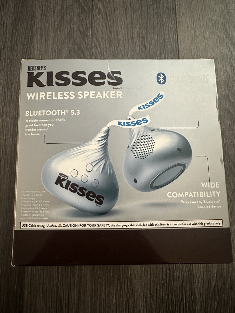 Enjoy your favorite tunes on-the-go with this Hershey Kisses Bluetooth Portable Wireless Speaker. This sleek and stylish silver speaker is compatible with all your Apple and Android devices, and boasts a wireless connectivity feature for hassle-free listening. Crafted from durable plastic material, this portable speaker system has a battery capacity of micro USB and RMS power of 5W, ensuring long-lasting and crystal-clear audio. With Bluetooth technology, you can easily connect to your device and enjoy a wide range of features. This unit comes in one quantity and is perfect for anyone who loves music on-the-go.