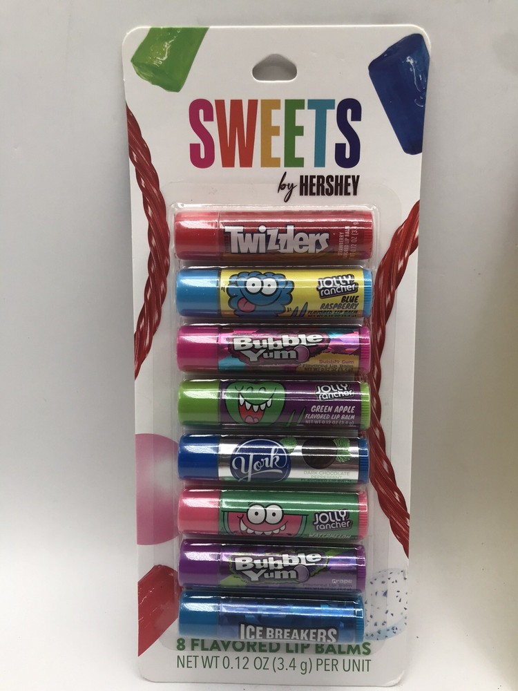 NEW Lot of 2 Flavored Lip Balm 8 Ct Sets ~ Hershey Sweets and Sour Patch Kids. New in original package. No return on this item.