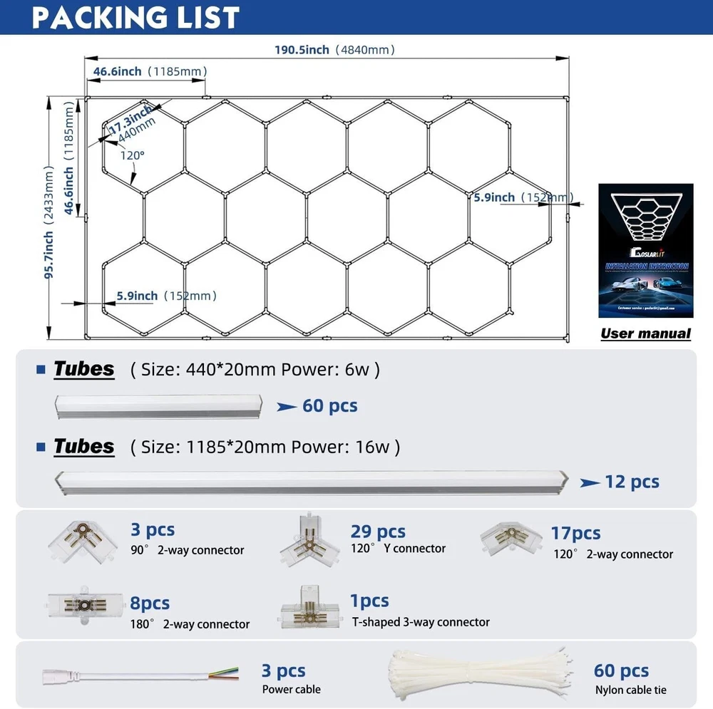 You may also like 14 Grid White Hexagon Garage Lights Led Hexagon Light DIY for Car Shop Gym p 175.99 USD Free shipping Hexagon Lights Garage 5-28 Grid System LED Car Detailing Shop Light Hex Barbe US 84.98 USD Free shipping Twinkle Headliner Star Light Kit Car/Home RGBW Ceiling Fiber Optic Lights 2/3m P 58.99 USD Free shipping Hexagon Garage Lights Customize 28 Grids Led Hexagon Light for Car Shop Gym US!! 475.99 USD Free shipping 2800X CAR HEADLINER METEOR STAR LIGHT ROOF SHOOTING CEILING LIGHTS FIBER OPTIC p 169.99 USD Free shipping Hexagon Lights Garage 5-28 Grid System Honeycomb RGB LED Garage Light Hex Barbe 79.88 USD Free shipping 5 Grid Remote Hexagon LED Ceiling Light RGB/white DIY Shaped Detail Garage Light 79.88 USD Free shipping 14-Grid Hexagon LED Lighting Car Detailing Garage Workshop Light Honeycomb USA 175.99 USD Free shipping 14 Grid White Hexagon Garage Lights LED Lights Lamp DIY for Car Detail Shop Gym 175.99 USD Free shipping LED Hexagon Garage Lights 14 Grid Hex Car Detailing Light for Basement Workshop 185.99 USD Free shipping Twinkle Home Car Headliner Shooting Starry Light Roof Ceiling Light Fiber Optic/ 86.99 USD Free shipping Hexagon Garage Lights Customize 14 Grid Led Hexagon Light Hex for Car Shop Gym 175.99 USD Free shipping Hexagon LED Garage Lights 6500K 14 Hex Car Detailing Light for Basement Workshop 185.99 USD Free shipping 1200X Car Headliner Meteor Star Light Twinkle Ceiling Fiber Optic Lights 2/3m US 135.99 USD Free shipping Twinkle Headliner Shooting Star Light Roof Remote 650 Ceiling Light Fiber Optic* 86.99 USD Free shipping 8 Grid White Hexagon Garage Lights Led Hexagon Light DIY for Car Shop Gym USA 128.99 USD Free shipping Product Description Hexagon LED Garage Light Honeycomb for Garage Auto Car Detailing 6000LM Hexagon LED Lighting: 2.4m x 4.8m - 14 Hexagon + Border Item Description: Two versions : 14 Hexagon LED Lighting (with / without) Border Total size - 2.43m x 4.835m ( Please see Main listing picture for detail) Easy assemble, Can be hung or fixed to ceiling. Technical data/specs: Colour Temperature: 5000K (Daylight) CRI (Ra>): 90 Input Voltage(V): AC 220V( ± 10%) Lamp Luminous Efficiency(lm/w): 65 Warranty(Year): 1-Year Working Temperature(℃): -20-45 Color Rendering Index(Ra): 60 Emitting Color: White Power Supply: AC Light Source: LED Support Dimmer: NO Lifespan (hours): 50000 Application: Office, Hotel, Residential, Sports Stadiums, CAR Workshop, Beauty salon, Retail etc Payment Shipping Terms Returns Contact Us About Taxes 1. We accept payment via PAYPAL ONLY . 2. Payment must be made within 4 days of auction closing. (Non-payment may result in a UPI (Unpaid Item) being put on your account. eBay will automatically close your account if you accumulate 4 UPI's total.) 3. TOTAL AMOUNT DUE includes the final auction price plus S&H(Shipping and Handling). 4.S&H will be determined based upon the SHIP TO address, Tax and customs. PLEASE NOTE: S&H DOES NOT INCLUDE DUTIES, LOCATL TAXES OR ANY OTHER IMPORTATION FEES. We are not responsible for any custom duty or import tax. 5. Please list your special requests (color, packages, etc.) in the PAYPAL NOTES SECTION when you make payment. Our working hours Beijing time from 9:00 a.m. to 18:00 p.m . Monday to Friday Delivery details 1. WORLDWIDE SHIPPING. (Except South America , APO/AFO,ect) 2.Orders processed within 24-48 hours of payment verification(excludes weekends and holidays). 3. We only ship to confirmed PAYPAL addresses. Your PAYPAL address MUST MATCH your Shipping address. 4. The images shown are not the actual item and are for your reference only. 5. SERVICE TRANSIT TIME is provided by the carrier and excludes weekends and holidays. Transit times may vary, particularly during the holiday season. 6. If you have not received your shipment within 40 days from payment, please contact us. We will track the shipment and get back to you as soon as possible with a reply. Our goal is customer satisfaction! 7. Due to stock status and time differences, we will choose to ship your item from our first available warehouse for fast delivery. 8.Delivery time: (Other countries or remote areas may take longer.) Delivery time: Country Delivery Time Working Days(not including holiday) 5-7 8-11 12-14 15-19 20-22 >22 Working Days+Saturday+Sunday 5-9 10-15 16-20 21-25 26-30 >31 United States Rate(item arrived) 5.1% 50.1% 29.6% 10.5% 4.7% Contact seller United Kingdom Rate(item arrived) 9.9% 63.2% 19.1% 3.4% 4.4% Contact seller Australia Rate(item arrived) 21.4% 50.0% 1 4.3% 7.2% 7.1% Contact seller France Rate(item arrived) 10.5% 28.6% 43.8% 10.1% 7.0% Contact seller Germany Rate(item arrived) 11.1% 22.2% 30.3% 20.9% 15.5% Contact seller Canada Rate(item arrived) 0.0% 47.1% 31.4% 17.6% 3.9% Contact seller Spain Rate(item arrived) 3.5% 25.0% 47.9% 12.9% 10.7% Contact seller (Other countries or remote areas may take longer.) Warranty: 1. One Year Manufacturer's Warranty for defective items (excluding items damaged and/or misused after receipt). Accessories come with a 3-month warranty. 2.If buyer requests a return when there is no quality problem of the item he received,return postage has to be paid by buyer,and postage for the item won't be returned. 3.If item is damaged or defective on arrival,buyer can either requests a refund or replacement,and postage will be paid by us,meanwhile,the item must be returned. Note: A. Customs duties is neither included in the item value nor the postage,which should be in the responsibility of buyers. B. Please check with your country's customs office to determine what these additional costs will be prior to bidding/buying. 1. You have 7 days to contact us and 10 days to return it from the date it was received. WE WILL ISSUE YOU A REFUND OR REPLACEMENT ! 2. All returned items MUST BE in the original packaging and you MUST PROVIDE us with the shipping tracking number , specific reason for the return, and your eBay ID . 3. We will refund YOUR FULL WINNING BID AMOUNT, upon rece