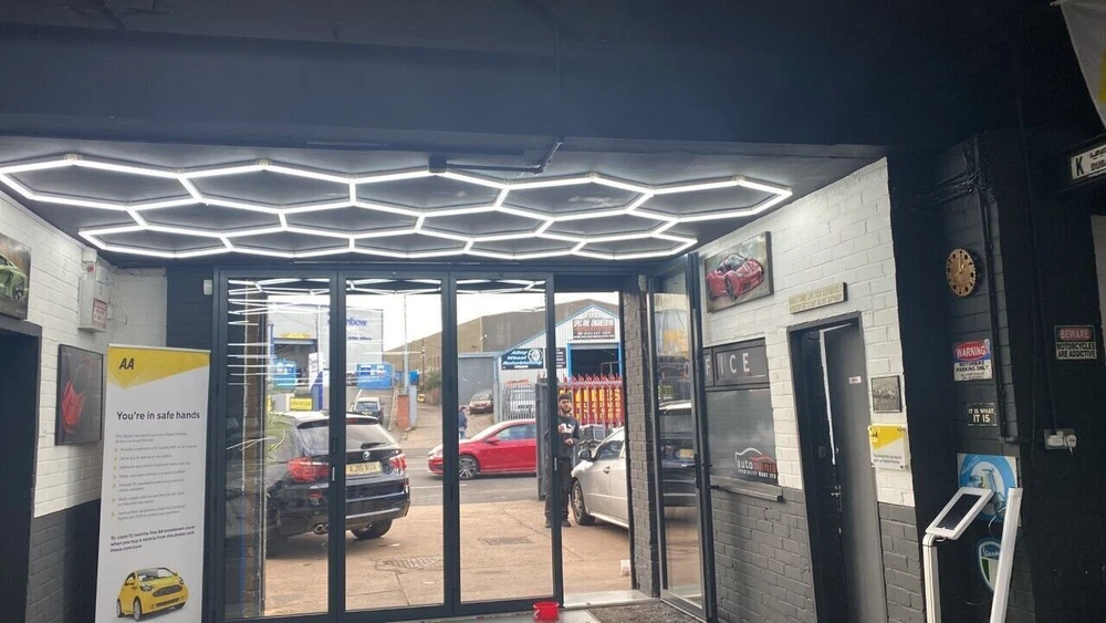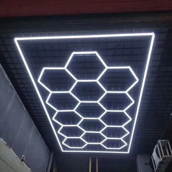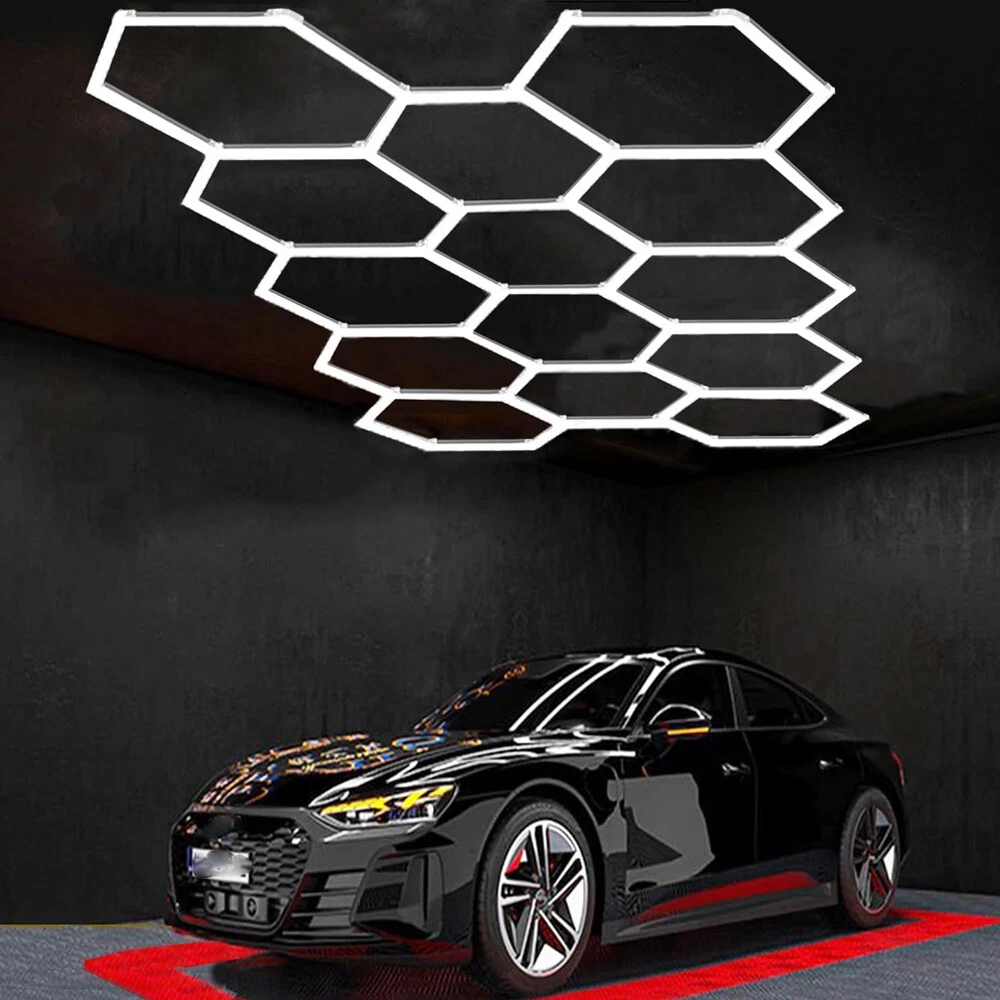 Hexagon LED Lighting Car Detail Garage Workshop Retail Light Honeycomb 14 Grids