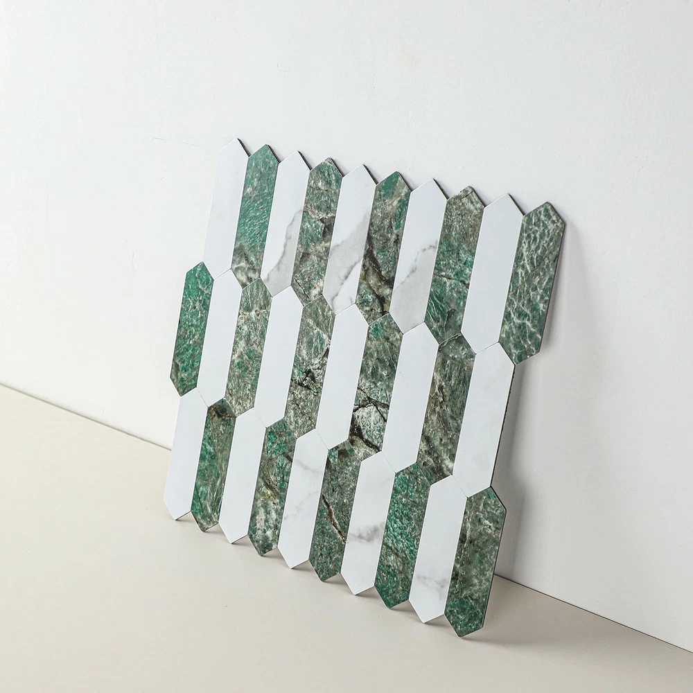 peel and stick tile backsplash are flexible and smart. Just peel and stick, no grout and contractor required, adapted to instant renovation and decoration. Peel and stick kitchen backsplash not suitable for Latex painted wall ,Repainted wall , Falling Ash wall !!! Kitchen backsplash made of anluminun composite panel and with Stronger backing adhesive backing than ordinary vinyl backsplash tile, stick firmly to the smooth & clean surface. The green marble look tiles are versatile and paired with today's popular furniture. Perfectly decorated in Kitchen island walls, bedroom walls backsplash, laundry room, Washbasin etc. Self-Adhesive Kitchen Backsplash colors never change over time, and easy wipe to remove the stain, don'
