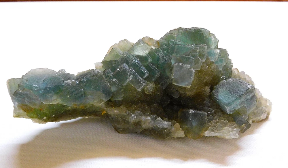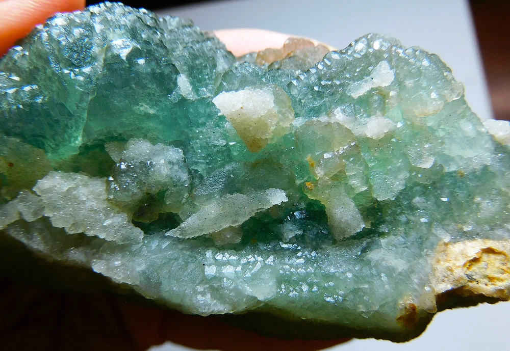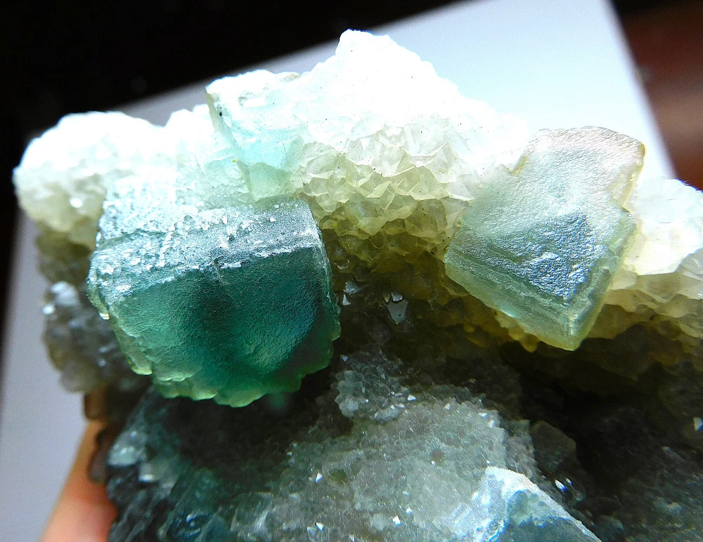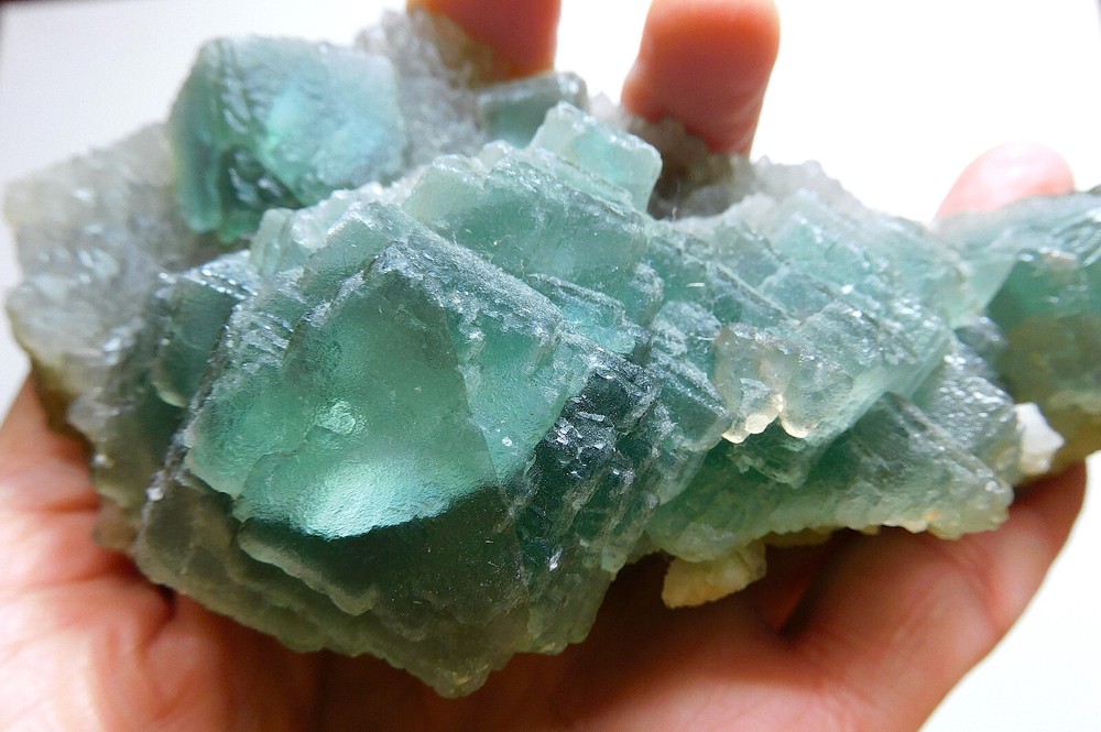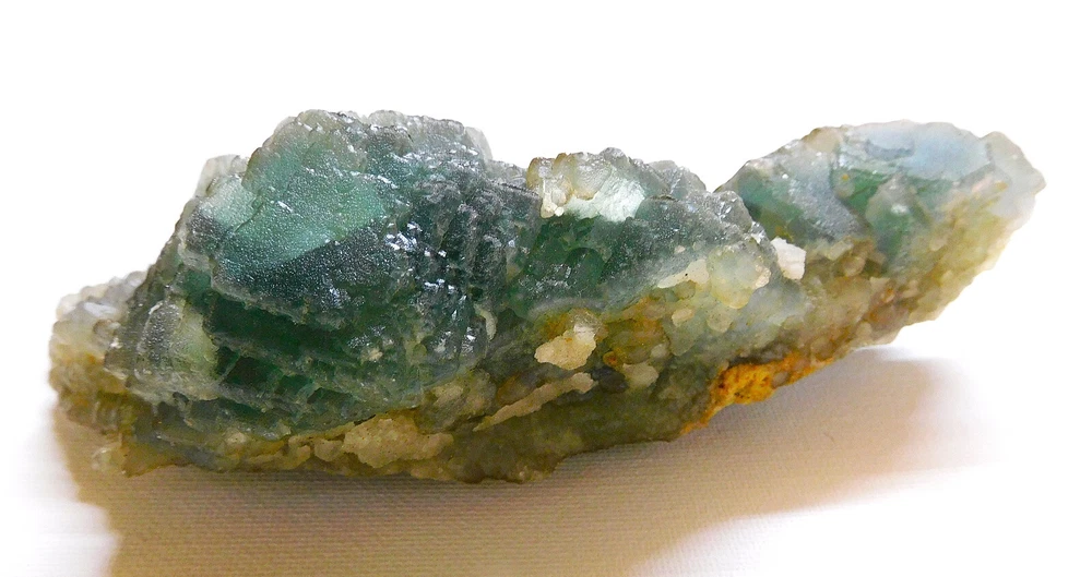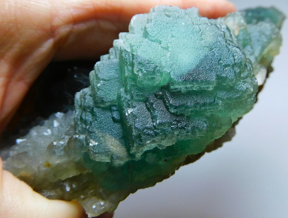 Hexagonal Blue Green Fluorite with Calcite Crystals Mongolia 456g