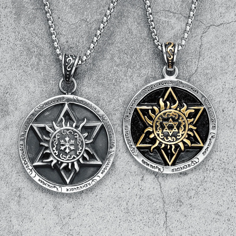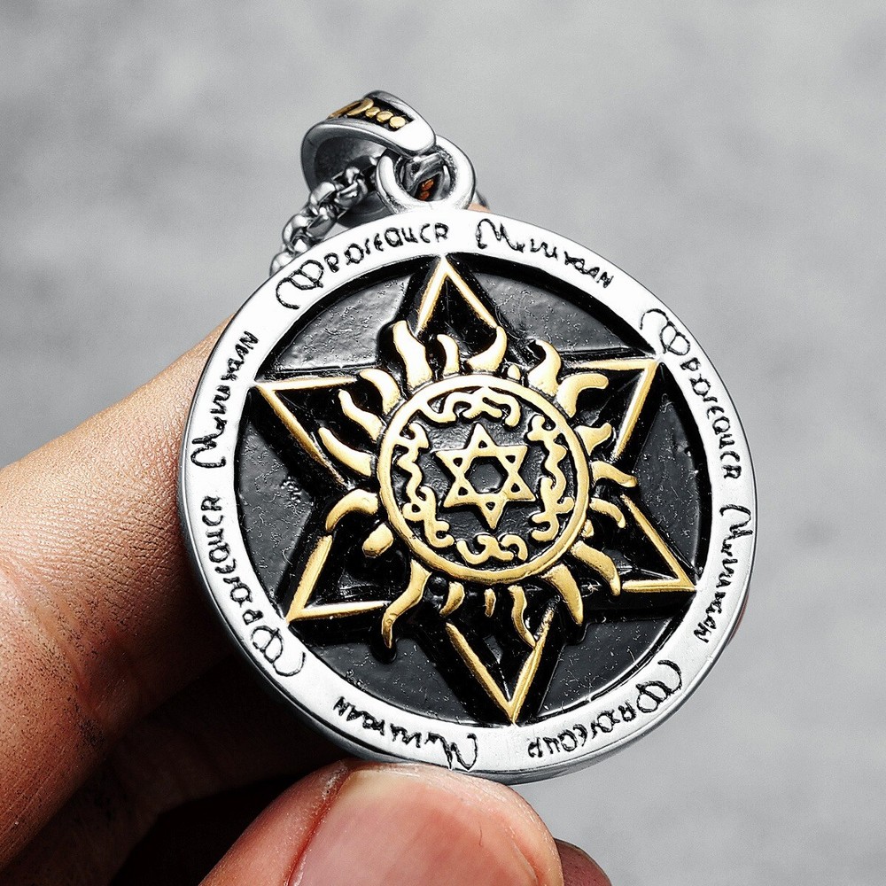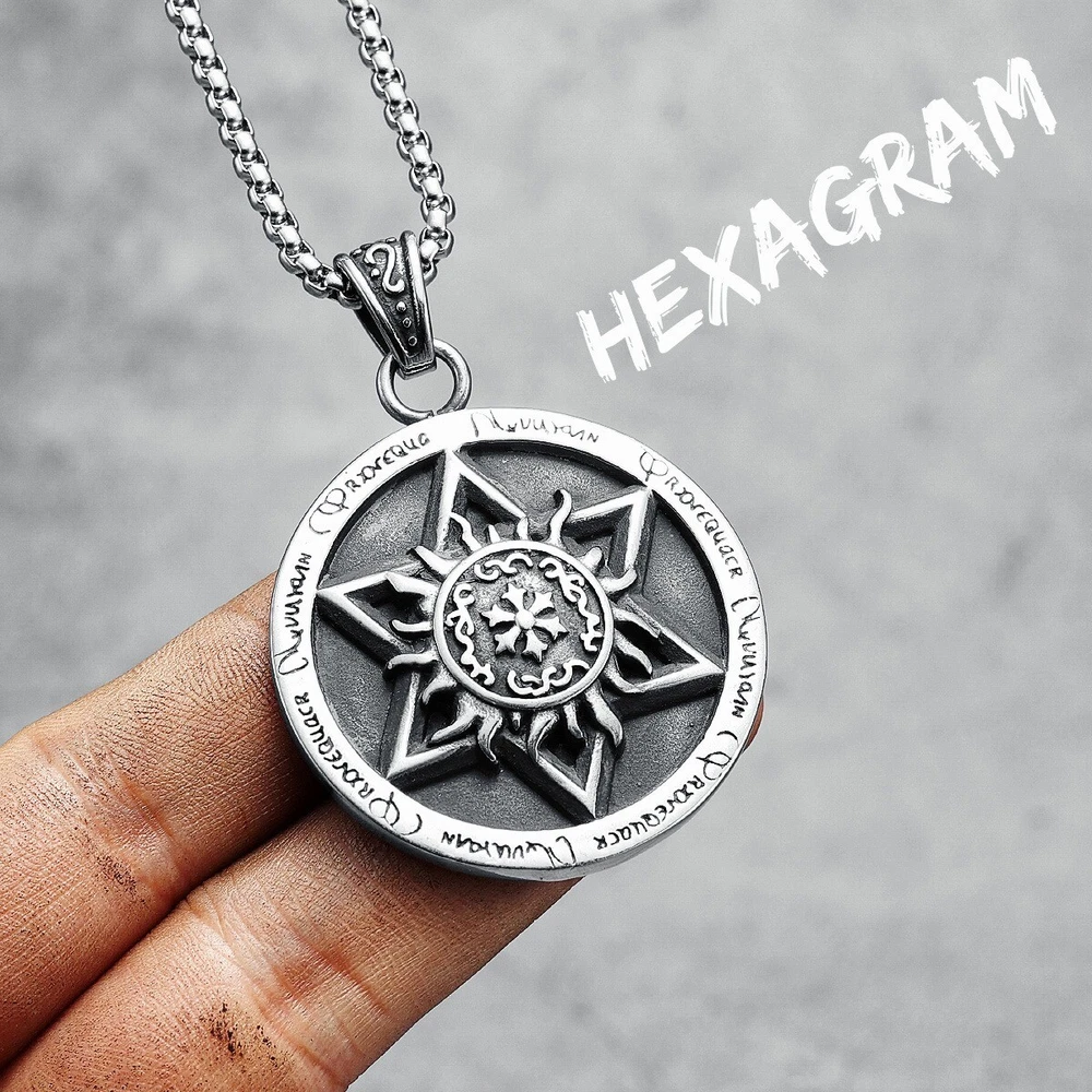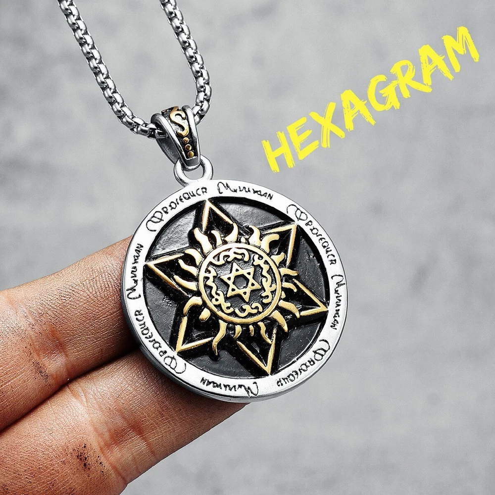 Hexagram Pendant Necklace Gold Silver Steel Talisman Chain Religious Symbol