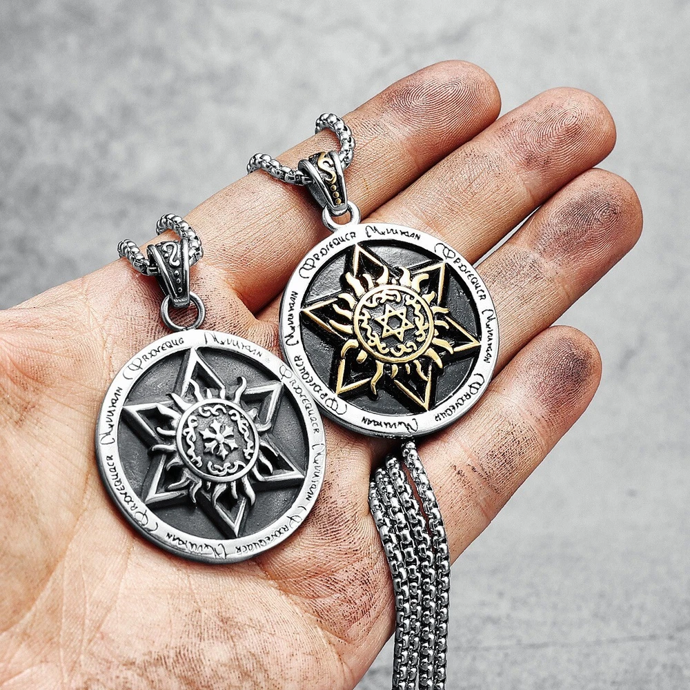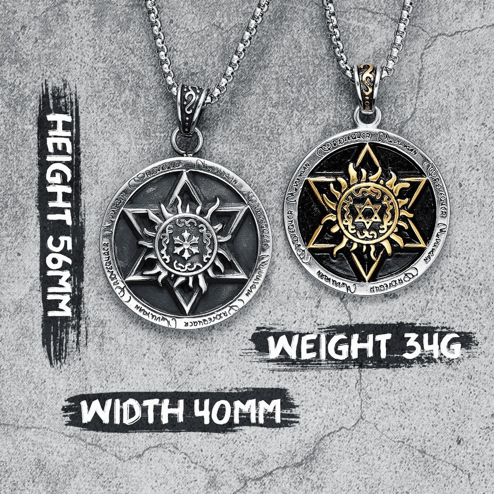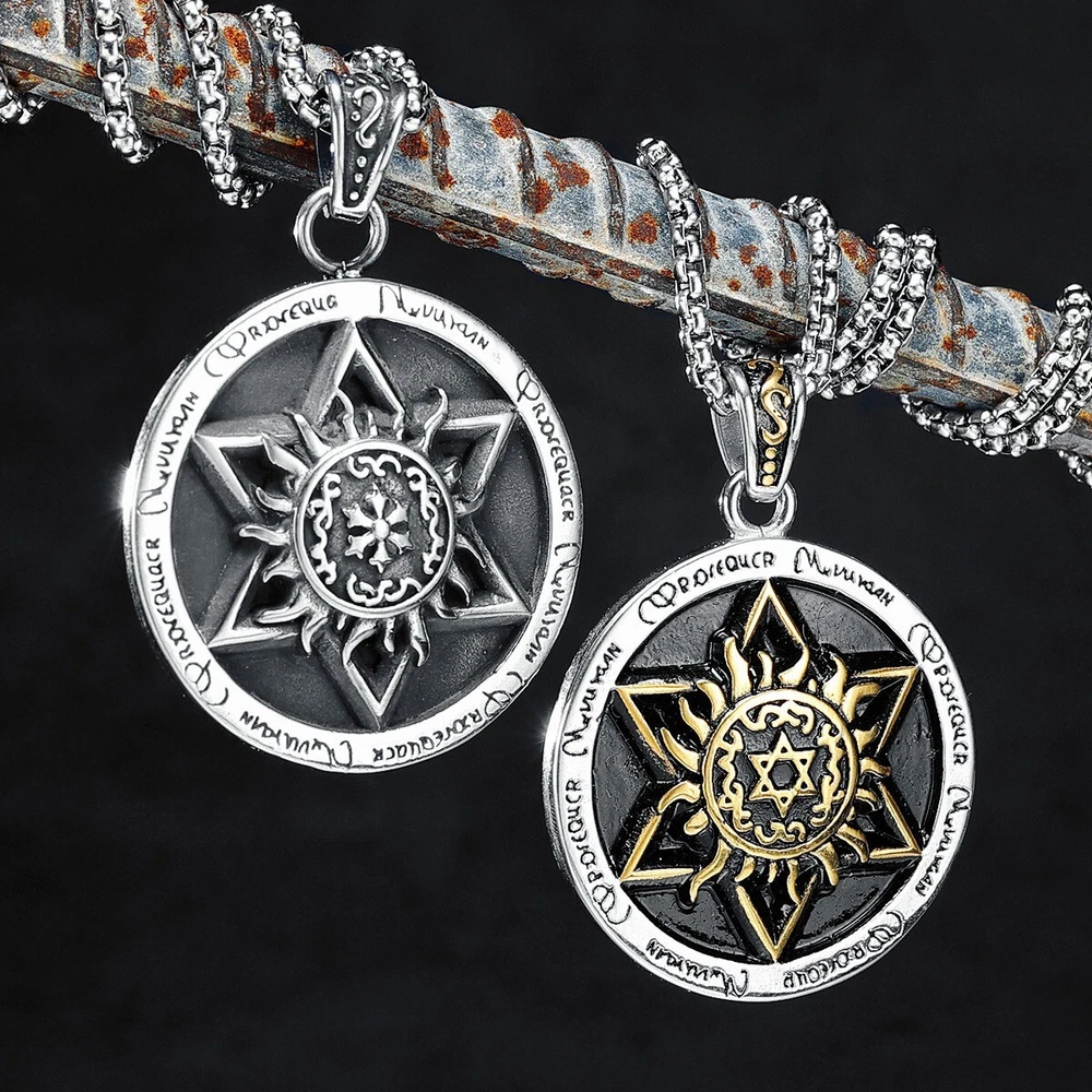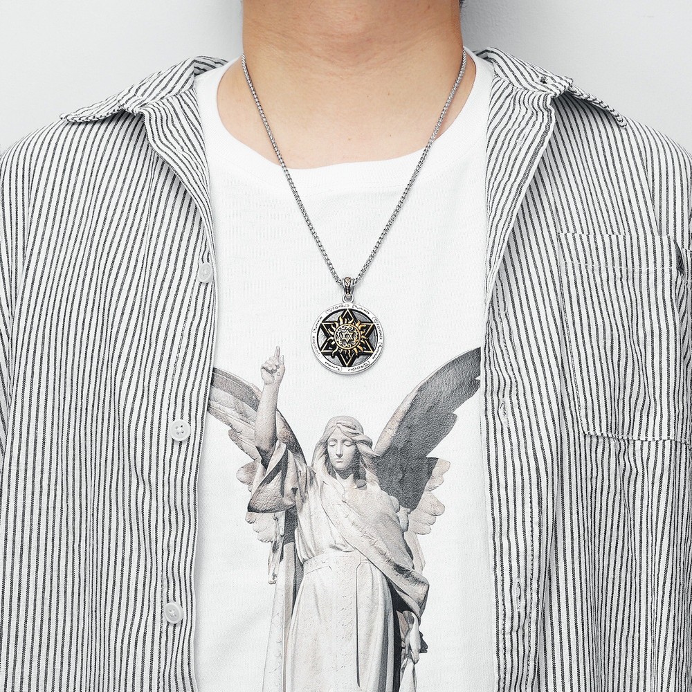 Hexagram Pendant Necklace Gold Silver Steel Talisman Chain Religious Symbol