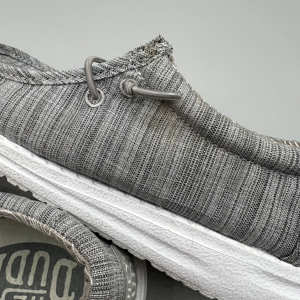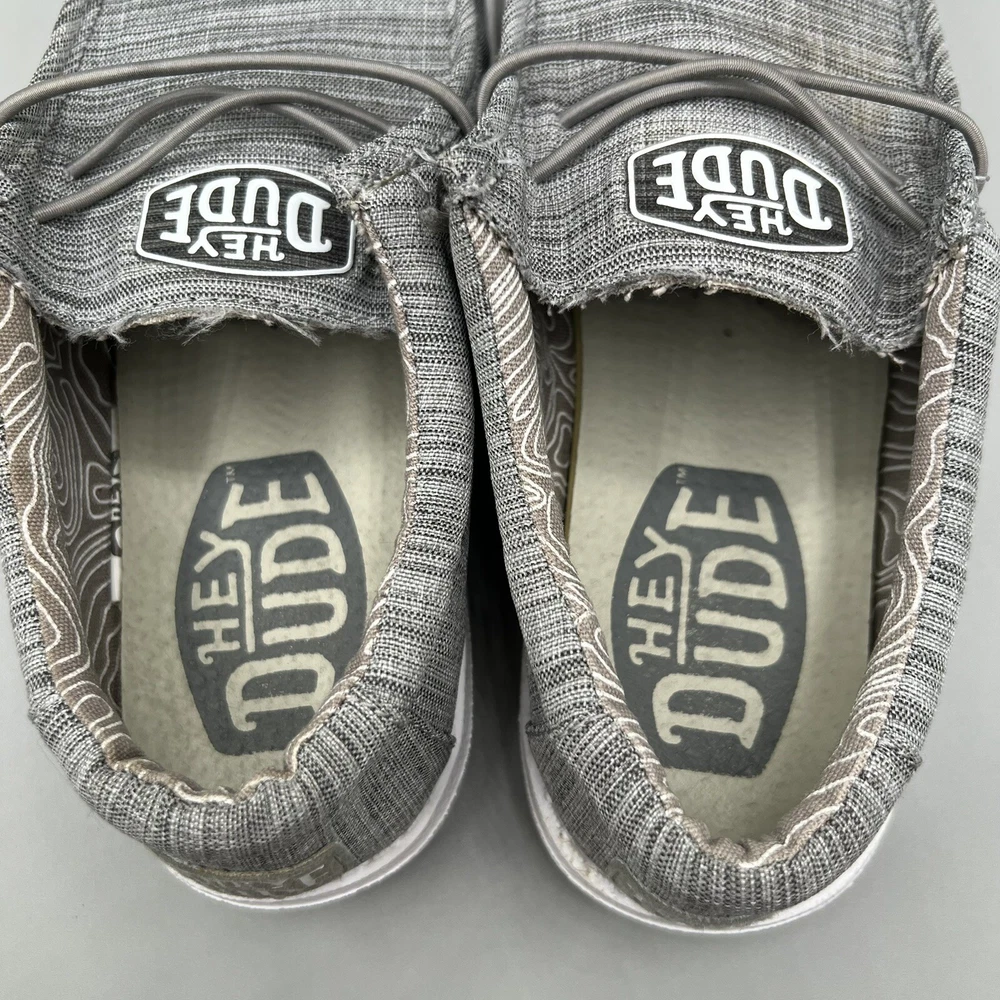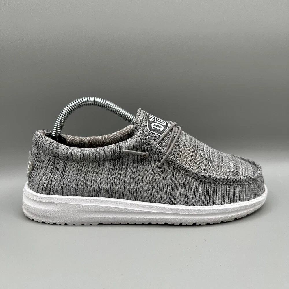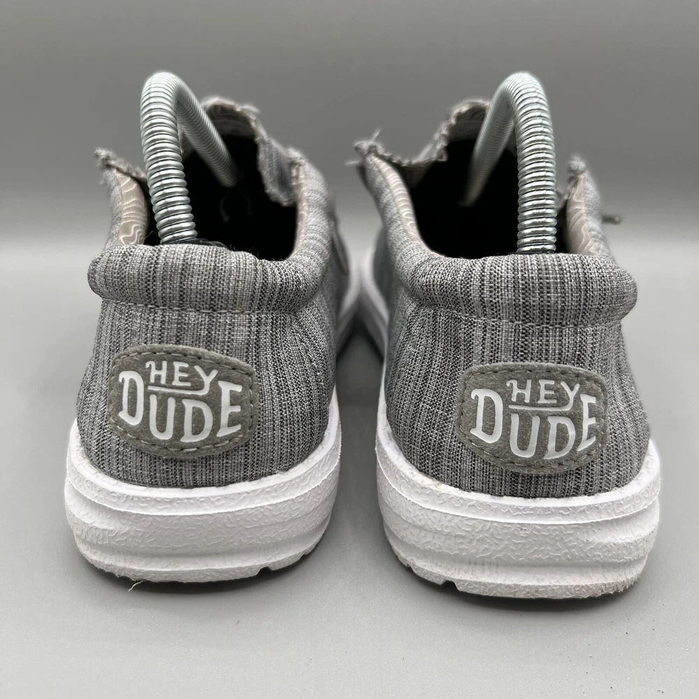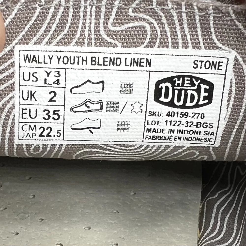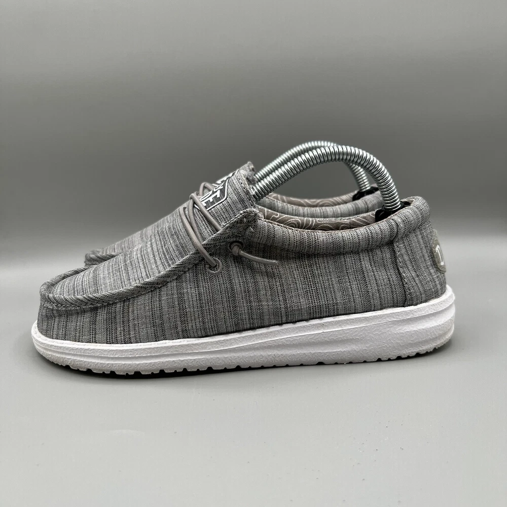 Hey Dude Wally Youth GS 3 Stone Gray Linen Blend Slip On Shoes 40159-270 Shoes are in good pre-owned condition. No defects but does have a couple light marks around the shoes (all photographed). Smoke free and pet free home. We list new stuff everyday! Feel free to send offers anytime! Please review all pictures and ask any questions you’d like before purchasing! Shipping next business day! The Hey Dude Wally Youth GS 3 Stone Gray Linen Blend Slip-On Shoes are designed for boys in US shoe size 3. These lightweight and comfortable shoes feature a slip-on style with a stretchy upper material made of linen blend in a stylish stone gray color.
