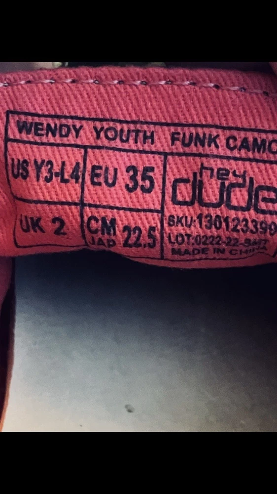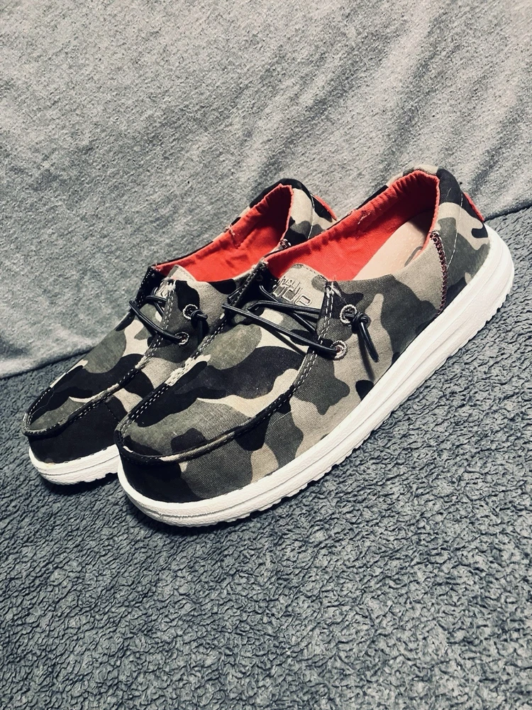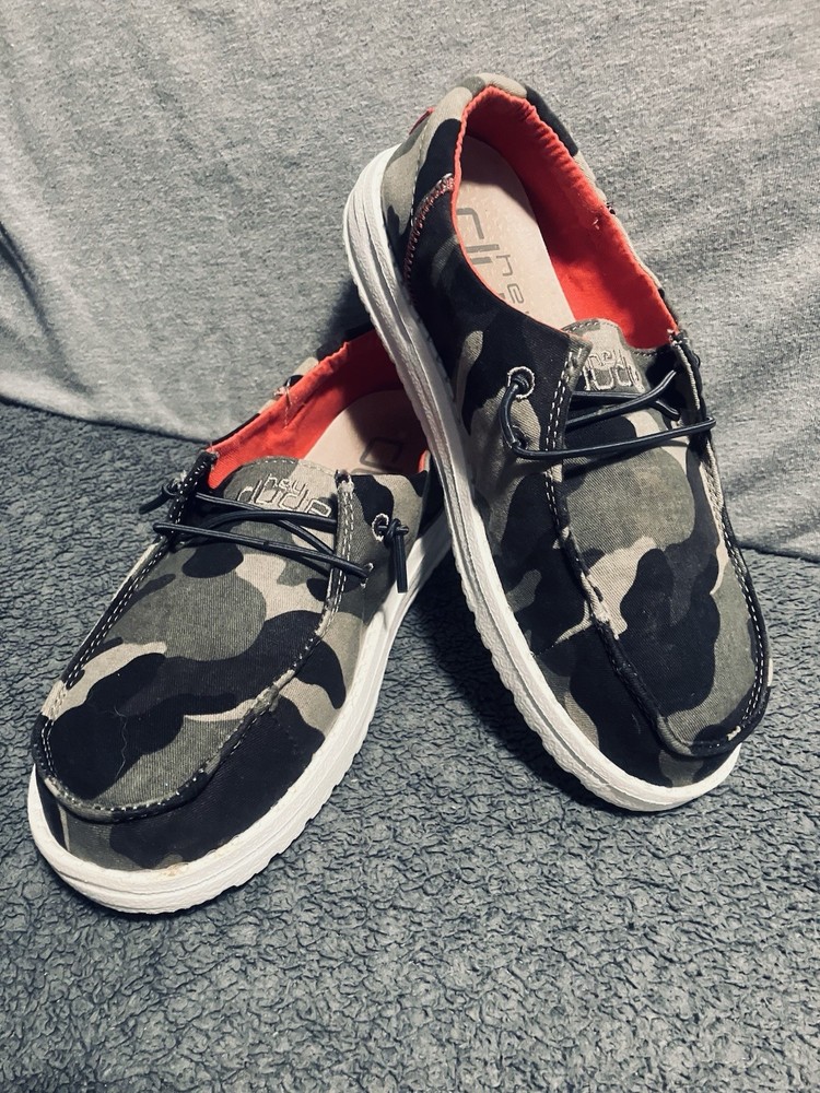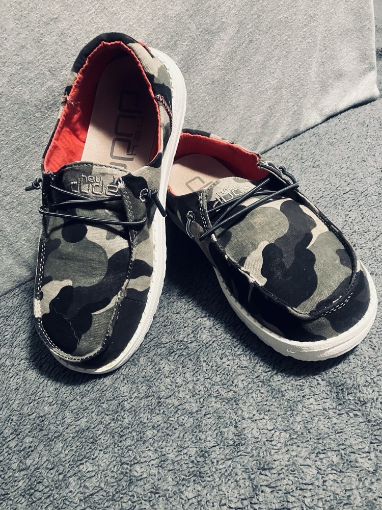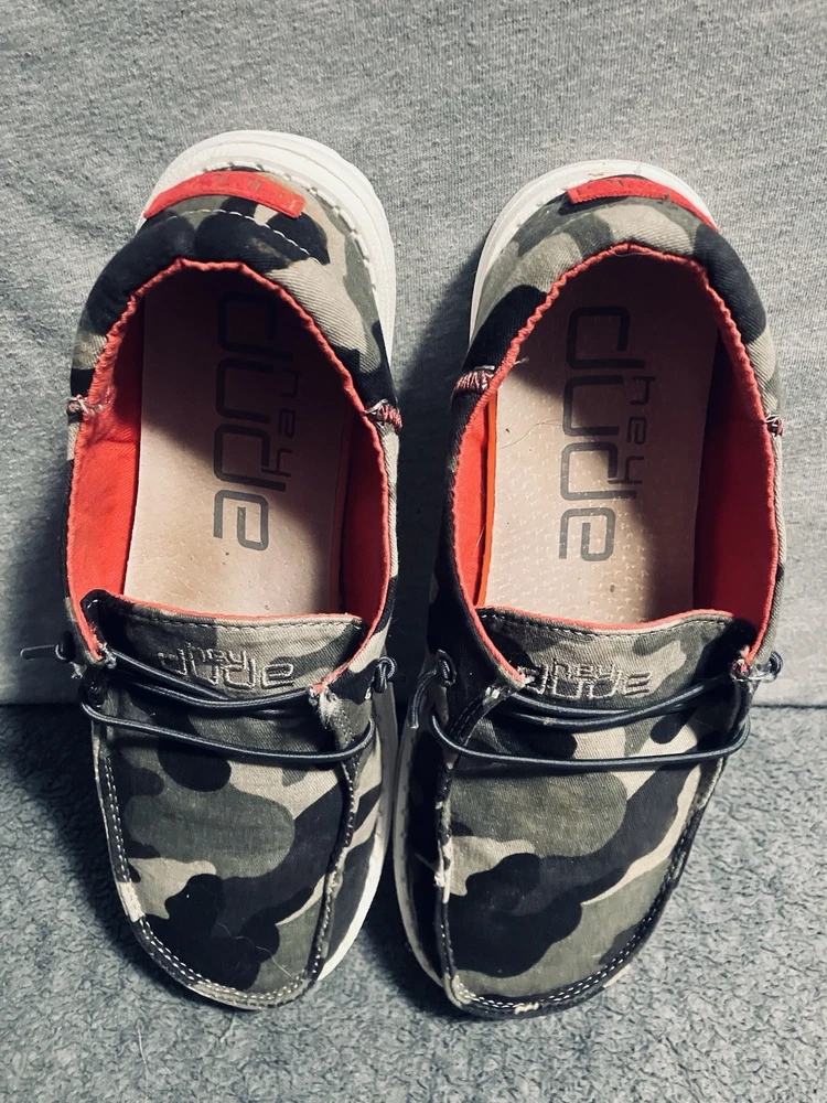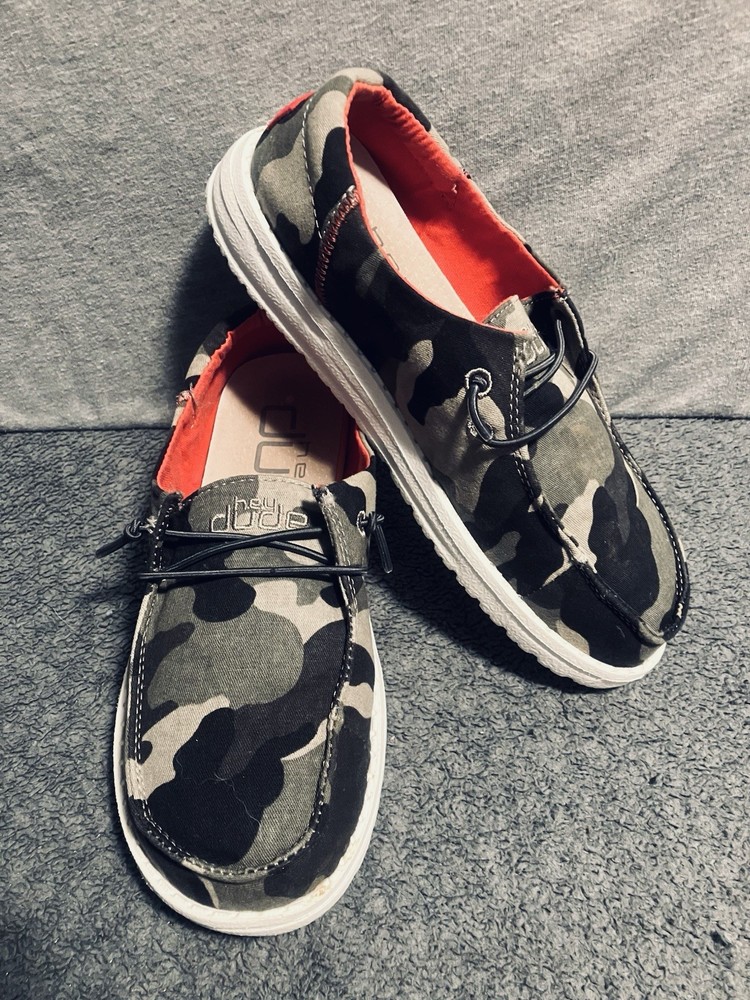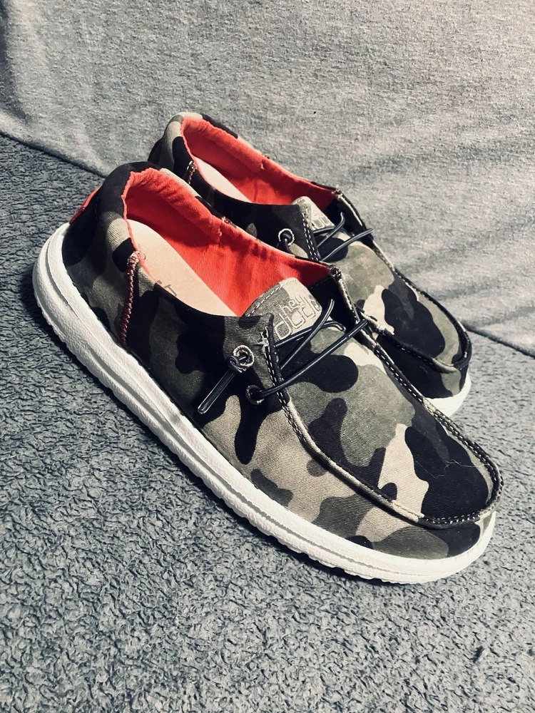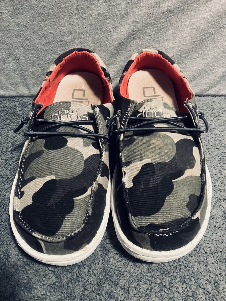 A PRE-OWNED Pair of Hey Dude Wendy Youth Funk Camo & Pink Slip On Shoes Girls Size Y3 L4 the shoes are PRE-OWNED without ORIGINAL BOX but are in great shape... Check out the pictures and judge the condition for yourself and feel free to ask any questions before purchasing... THANKS FOR LOOKING and remember the FAST FREE SHIPPING!!