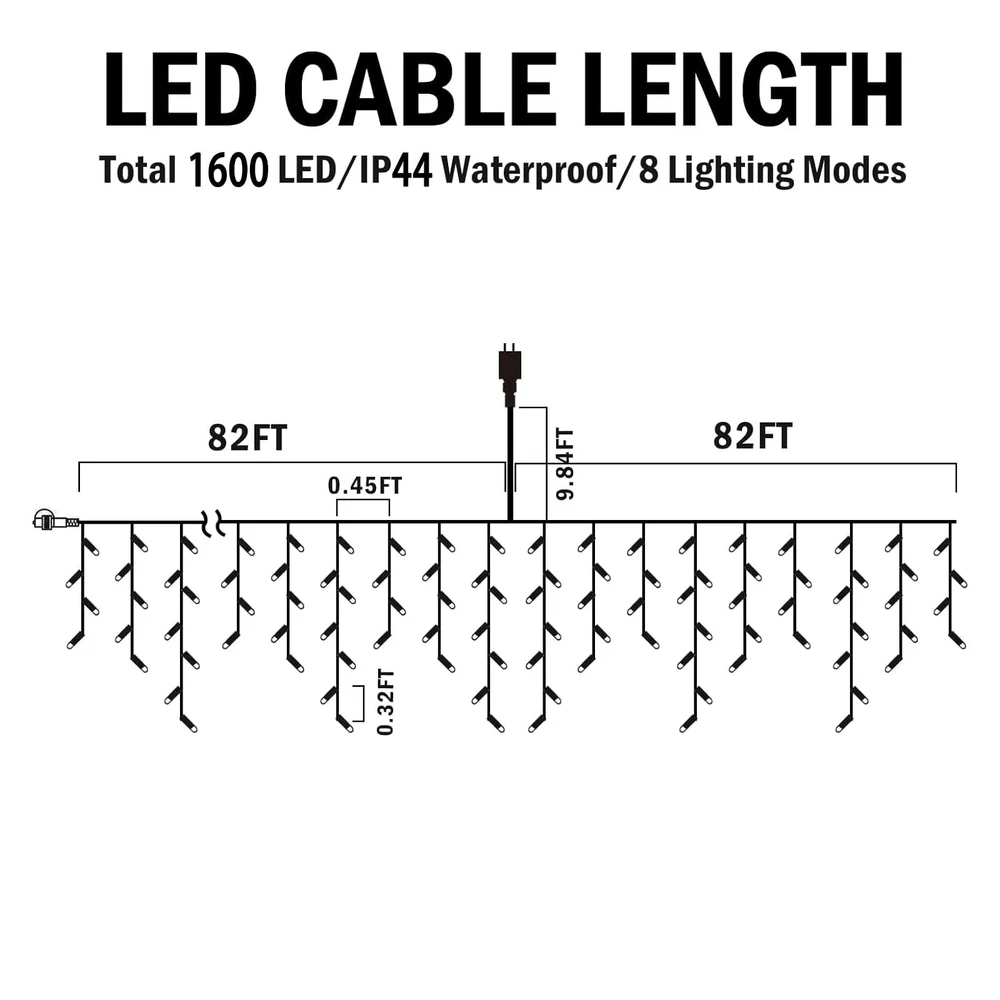 Hezbjiti Christmas Lights Decorations Outdoor, 1600LED 164FT Ice Fairy Lights 8 Modes 320 Drops Fairy String Lights for Christmas Decor Eaves Party Yard Garden Product information Technical Details Color Multicolor Brand Hezbjiti Indoor/Outdoor Usage Outdoor Special Feature Cordless Light Source Type LED Power Source DC Light Color Multicolor Theme Christmas Occasion Christmas Style Modern Material Acrylic Controller Type Remote Control Number of Light Sources 1600 Voltage 120 Volts Wattage 9 watts Included Components String of LED lights Item Weight 5.39 Pounds Number of Items 1 Control Method Touch Water Resistance Level Waterproof Seasons Christmas Manufacturer Linhai Baoguang Lighting Co.,Ltd Part Number BG-CL3M3-306L01 Item Weight 5.39 pounds Package Dimensions 10.04 x 6.97 x 6.81 inches Country of Origin China Item model number BG-CL3M3-306L01 Special Features Cordless Batteries Included? No Batteries Required? No A Perfect Christmas Can't without Colorful Christmas Lights: There's nothing better than LED Christmas lights to express our happy mood in the grand festival. It shows that we attach great importance to Christmas. Reposing our love for life and a perfect expectation of the new year. Reposing our love for life and a perfect expectation of the new year. Hezbjiti Christmas lights outdoor decorations are a superb addition to the family display. Waterproof UL Safe to Use: IP44 waterproof grade Christmas decoration string lights are perfect for outdoor use without any damage. Understand any extreme weather, including wind, rain, heavy snow, and hot sun. These super brighter decorations ice lights can be used both indoor and outdoor. Tips: Please note that the US Plug is NOT 8 Lighting Modes Christmas Lights: 8 different lighting modes include combination, fireflies flashing, waves, fading, chasing/flashing, fading slowly, twinkle/flashing, and steady on. Combining various lighting modes to make a cheerful and light-hearted atmosphere. Our outdoor decoration lights are to create a cheery and casual festive atmosphere. Brighter Energy Saving String Lights Outdoor Decor: Outdoor string lights for Halloween equipped with high-quality LEDs, brighter, tough, and drop resistant, long time service time. Energy-saving,no need to worry about electricity bills. The flexible cord can be hung anywhere you want, just simply tie it on and plug it in then it's ready to use. The plug extension cord is 3m for us to install our ice lights in the garden, and roof. What is Your Get: 1 x ice lights, 1 x plug , 1 x manual. All of the LED bulbs are filled with hot melt adhesive layers, the anti-freezing and anti-oxidation performance will ensure longer service life and function in times of heavy rain and snow. But please kindly note that the plug needs to be protected from water. Hezbjiti LED Christmas Lights,Fairy String Lights Plug in Extendable Curtain Light String Christmas Lights for Bedroom Patio Yard Garden Wedding Party Shipping We offer FREE shipping on all orders! We ship within Three business days of payment, usually sooner. We use a selection of shipping services such as UPS, FedEx, USPS etc. We only ship to the lower 48 states, no APO/FPO addresses or PO Boxes allowed. Local pickups and combined shipping options are not provided at this time. Return You can return a product for up to 30 days from the date you purchased it. Any product you return must be in the same condition you received it and in the original packaging. Please keep the receipt. Payment We accept payment by any of the following methods: PayPal Please pay as soon as possible after winning an auction, as that will allow us to post your item to you sooner! Feedback Customer satisfaction is very important to us. If you have any problem with your order, please contact us and we will do our best to make you satisfied. Contact Us If you have any queries, please contact us via ebay. We usually respond within 24 hours on weekdays. Please visit our eBay store to check out other items for sale! Thank you for shopping at our store.