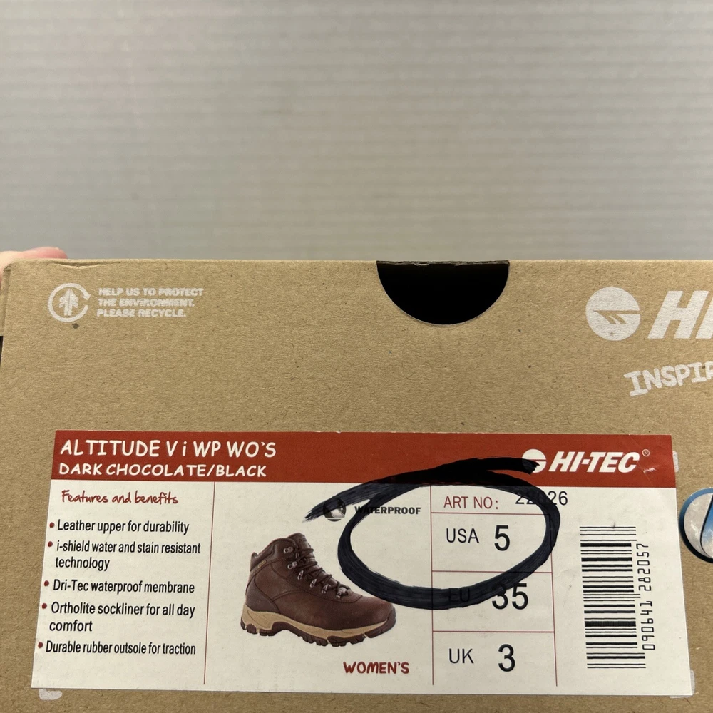 Hi-Tec Altitude VI Outdoor Hiking Trail Boots Rugged Brown Waterproof Slip Resistant Womens SZ 5 Excellent Condition with Box