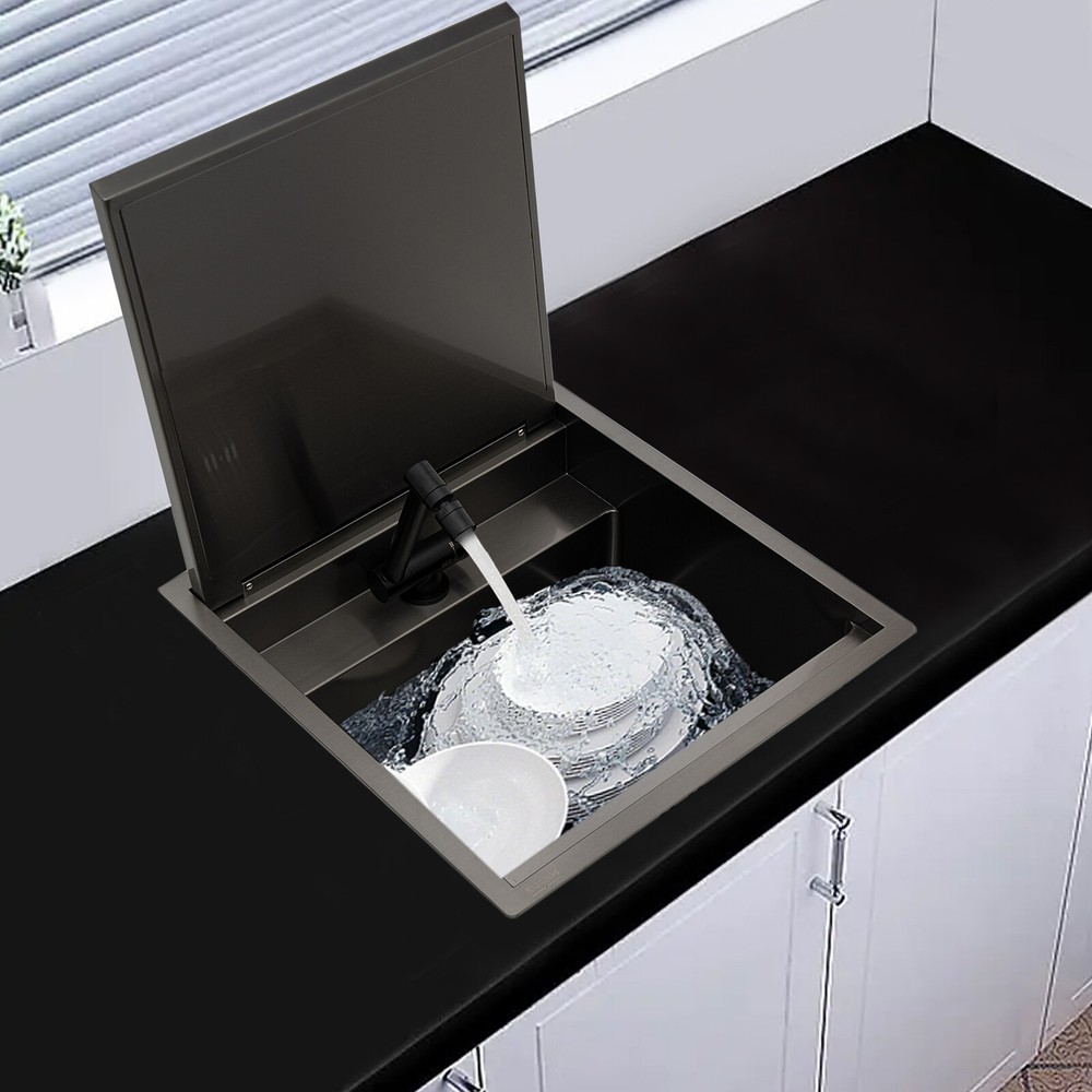 🔔 SpecificationColor: SilverShape: RectangularStyle: ModernAssembly Required: YesMaterial: 304 Stainless Steel, PPSurface Treatment: Nano CoatingProcessing: CNC WeldingCover Load-bearing Capacity: 5kg/ 11.02lbsSink Load-bearing Capacity: 20kg/44.09lbsProduct Size: 45*43*23cm/ 17.7*16.9*9inchPackage Size: 54*51.5*39cm/ 21.26*20.28*15.35inchGross Weight: 11.8kg/ 26lbs🔔 Package Included1* Sink1* Cold & Hot Tap1* Sewer Pipe1 Set*Cold & Hot Water Pipes1*Chinese Installation Instruction Hidden Kitchen Bar Sink Single Bowl w/Folding Faucet+ Drain+ Lid Stainless Steel Single Bowl Kitchen Bar Sink 🔔 Description This kitchen bar sink is an ideal cleaning tool. The high-quality material gives it a longer service life. A 9-inch deep sink can help you complete a large number of cleaning tasks at once. The damping of the sink cover and the soundproof pad at the bottom of the sink can reduce noise and provide you with a good cleaning environment! 🔔 Key Features Build to Last: The high-quality 304 stainless steel, PP, and CNC welding process make it very sturdy and durable. The nano-coating process on the surface not only gives it a more metallic texture, but also enhances its ability to resist corrosion, oil stains, and rust. Large Capacity Sink: The 17.7 * 16.9 * 9-inch large-sized sink can complete a large number of cleaning tasks and can accommodate many pots and pans at the same time, making it very suitable for commercial use. Low Noise: The damped cover plate can achieve almost silent and slow descent, and the noise reduction pad at the bottom of the sink can effectively reduce the noise generated when water flows into the metal sink, providing you with a quieter and cleaner atmosphere. Space-saving: The folding faucet and cover can save space on the kitchen countertop, and also provide additional working space, making the table cleaner and more aesthetically pleasing. Convenient to Use: The foldable and 360 ° rotating faucet is convenient for you to clean. Its filtration basket can perform layered filtration on sewage, preventing the problem of sewer blockage caused by large objects falling into the sink. The sink is equipped with a hot and cold water faucet, which you can easily control with the handle according to your preference, allowing you to use water comfortably all year round. High Load-bearing Capacity: The stable sink can bear 44.09 lbs, and the cover plate can bear 11.02 lbs of items. Such strong load-bearing capacity allows you to use it with confidence. Easy to Clean: It adopts a nano-coating treatment, and has X-shaped guide lines , which makes the surface of the sink smooth, less prone to oil and scale, and drain quickly without clogging or splashing. Simple Installation: The simple structure, complete accessories allow you to easily install in a short period of time. Customer Service: We aim to provide quality products and services. If you have any problems, please feel free to contact us. We will reply and solve the problem for you as soon as possible. 🔔 Details Convenient Cover Plate: The narrow space at the opening of the cover plate allows you to open and close it, making it more convenient to use. R10 Rounded Corners: R10 small corner design with superior aesthetics, which improves safety and is easy to clean. Exquisite Overflow Holes: It allows you to say goodbye to water spills and keep your kitchen as clean as possible. Internal Platform: It allows you to place some cleaning utensils within reach, such as sponge wipes, detergents, to improve cleaning efficiency. PP Downpipe: It has high-temperature resistance and prevents anti-odor and anti-clogging. V-shaped Drainpipe: The v-shaped design pipe effectively isolates bad smells and prevents backwater, and clogging. 🔔 Application This sink is suitable for cleaning food, fruits, and vegetables, and any kitchen, bar, restaurant, dessert shop, clean room, cafeteria, garage, or any other business place. 🔔 Specification Color: Silver Shape: Rectangular Style: Modern Assembly Required: Yes Material: 304 Stainless Steel, PP Surface Treatment: Nano Coating Processing: CNC Welding Cover Load-bearing Capacity: 5kg/ 11.02lbs Sink Load-bearing Capacity: 20kg/44.09lbs Product Size: 45*43*23cm/ 17.7*16.9*9inch Package Size: 54*51.5*39cm/ 21.26*20.28*15.35inch Gross Weight: 11.8kg/ 26lbs 🔔 Package Included 1* Sink 1* Cold & Hot Tap 1* Sewer Pipe 1 Set*Cold & Hot Water Pipes 1*Chinese Installation Instruction All Accessories for Assembly 🔔 Notes Please note that you need to calculate the space for the kitchen sink in advance. Please allow the slight color difference caused by the shooting light and 1-3 cm error due to manual measurement, and make sure you do not mind before ordering. Payment Delivery details Terms of sales About us Contact us Payment We accept ebay payment 。 Fees such as import duties, taxes are not included in the item price or shipping costs. These charges are the buyer's responsibility. Delivery details Shipping: 2-9 working days to: USA Terms of sales We maintain high standards of excellence and strive for hundred percent customer satisfaction. Feedback is very important to us. We hope that you contact us immediately before you give neutral or negative feedback, so that we can address your concerns. It is impossible to address issues if we do not know about them! About us Your satis faction is our ultimate goal. We work hard to earn your trust and future business. Our certified technicians have tested each item before shipping. The unit comes with 1 year limited warranty on all manufacturing defects. a) If you receive a defective item, you may return it or ask for a discount. Please contact us within 14 days after you receive the package. b) What you returned must be intact and in its original packaging as re? u. Customer is responsible for shipping costs of the returned item. c) We will cover the cost of shipping back t with the shipping rate indicated in the registration page. We will se