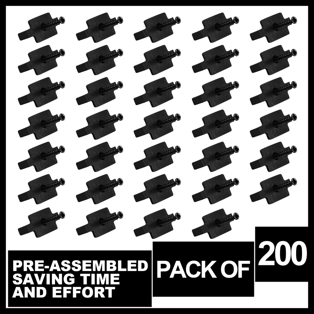 Features: Enough to use: The combination of plastic decking fasteners and screws is ideal for your use, sufficient quantity for you to share with your friends. Specifications: Main material: nylonethelene, metal Color: black Hidden fasteners: approx. 35 x 20 mm/ 1.38 x 0.79 inch Screw: approx. 30 mm/ 1.18 inch Package includes: 200 x Hidden fasteners 200 x Screws Notes: Manual measurement, please allow slight errors on size. The color may exist a slight difference due to different screen displays. Package Includes: you will receive 200 pieces of hidden fasteners in the package, and comes with 200 pieces of deck screws, enough quantity and a nice combination for your use and Reliable to Use: the plastic decking clips are made of high density nylonethelene material, strong and sturdy, and they are adaptable, suitable for most decking panels hidden fastening Scope of Application: the hidden fasteners can be applied on the frame of the deck, making the deck more stable, and still look clean and compact, bringing you a nice using experience Easy Installation: these decking fasteners can be installed over wood deck frames, and can also be installed on a variety of grooved composite decks, which is easy and convenient to install Warm Tips: the plastic T clip measures approx. 35 x 20 mm/ 1.38 x 0.79 inch, the middle raised buckle part is 6 x 6 mm/ 0.24 x 0.24 inch, and the composite deck screws are about 30 mm/ 1.18 inch; Please pay attention to see the size, so as not to cause inappropriate situation