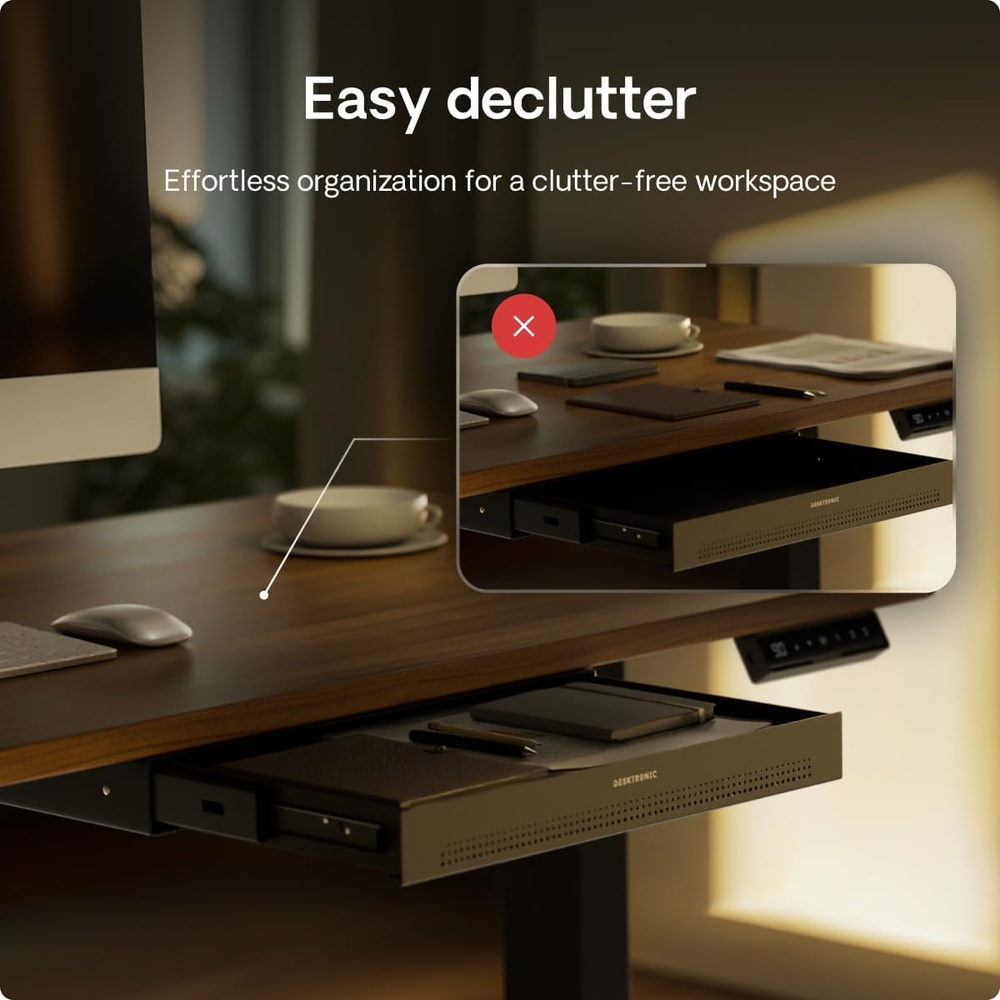 Store New Arrivals Add to Favorite View Feedback Contact Hidden Organizer, Under-Desk Storage Drawer - Easy Installation, Space-Saving, Large Capacity, Metal, for Office and Vanity - Durable Construction (Black) Description Assembly Instructions Description function(f) {var _np=(window.P._namespace("DetailPageProductOverviewTemplatesJava"));if(_np.guardFatal){_np.guardFatal(f)(_np);}else{f(_np);}}(function(P) { P.when('A').execute(function(A){ A.on('a:truncate:po-attribute-truncate-8:updated', function(data) { var isTruncated = !data.truncateInstance.getIfTextFits(); var seeMoreElement = document.getElementById('po-attribute-see-more-id-8'); if(seeMoreElement) { seeMoreElement.style.display = isTruncated ? '' : 'none'; } }) }); })); Flat bottom drawer attaches in seconds. It comes with all the necessary tools and clear instructions so you can secure the drawer quickly and effortlessly. See more Product Dimensions 41 x 27.2 x 5.08 cm; 3.5 kg Colour Name Black Assembly required Yes Item Weight 3.5 kg Colour Black Material Metal Model Number DRW-1 Item weight 3.5 Kilograms Product dimensions 41D x 27.2W x 5.1H centimetres Frame material Metal Number of drawers 1 Lasts for years: Sturdy steel under desk drawer construction will ensure long-lasting durability and the super smooth sliding mechanism opens and shuts quietly. Fits almost every table: Under table drawer is compatible with a wide range of desks and is a perfect addition to our HomeOne and HomePro desks (except for the120x60 size). Quick and easy installation: The under desk drawer is easy to attach and comes with all necessary tools and clear instructions, allowing you to quickly and effortlessly secure it. Minimal design: The metal under desk storage features a beautiful design that complements any tabletop or frame. Its sleek look enhances any workspace, making it a perfect match for various desk styles. Everything within reach: Keep your essentials within reach. Desk drawer has enough space for your phone, earbuds, pencils, paper, and desk accessories, perfect for organizing your home office or workstation. Product Description 1 Space saver 2 Perfect fit 1 Office desk 2 Dressing table 3 Workbench Desktronic Product Line: Add To Basket Add To Basket Add To Basket Add To Basket Add To Basket Add To Basket Add To Basket Customer Reviews 4.6 out of 5 stars 472 4.4 out of 5 stars 140 4.7 out of 5 stars 860 4.8 out of 5 stars 792 4.8 out of 5 stars 3,097 4.4 out of 5 stars 134 4.6 out of 5 stars 173 Price £38.99 £ 38 . 99 £69.99 £ 69 . 99 £32.99 £ 32 . 99 £349.99 £ 349 . 99 £299.99 £ 299 . 99 £369.99 £ 369 . 99 £249.99 £ 249 . 99 Product Desk drawer Single monitor stand Desk Cable Tray Height-adjustable desk Height-adjustable desk Ergonomic office chair Ergonomic office chair Best for Every desk Every desk Every desk Home & small / large office Home & small office Home & office Home & office Special feature # 1 Smooth gliding mechanism Space saving technology Metal construction Fast dual-motor system 50mm/s Fast dual-motor system 30mm/s Made larger and wider Made larger and wider Special feature # 2 Sturdy metal construction 360° rotation Larger to fit power adapters Maximum Stability Rating A++ Maximum Stability Rating A++ 10 Adjustable Points 6 Adjustable Points Special feature # 3 Spacious for work essentials Wide compatibility 5 cutouts - easy cable routing European one-piece tabletop European one-piece tabletop Pressure Relief Seat Cushion Pressure Relief Seat Cushion Special feature # 4 Quiet opening and closing Sturdy metal construction 10x Cable Ties Included Built-in Charging Ports Built-in Charging Ports Soft & Wide 3D Armrest Soft & Wide 4D Armrest Customization options Black, white, grey Black, white Black, white, grey 75 color/size variations 45 color/size variations Black, grey Black, grey Max weight / load capacity Up to 5 kg Up to 8 kg Up to 5 kg Up to 160 kg Up to 120 kg Up to 136 kg Up to 136 kg Easy Assembly ✔ ✔ ✔ ✔ ✔ ✔ ✔ ABOUT US At TheNextDayShipper, we always put the customer first - that's why we offer free next day delivery and 30 day returns on all of our products SHIPPING We’re a UK-based seller, dedicated to getting your order to you as quickly as possible. We ship all orders the same day and deliver next day across the UK, completely free of charge. While we work hard to ensure every parcel arrives on time, please understand that factors such as weather conditions, postal delays, or courier performance may occasionally be outside our control. For international buyers, we use eBay’s Global Shipping Programme . Your item will first be sent to eBay’s UK distribution centre and then forwarded to your country. International customers are responsible for any import duties or taxes, and any queries regarding the Global Shipping Programme should be directed to eBay directly. RETURNS We offer a 60-Day Return Policy on items in which you are not completely satisfied with. You have the option of a full-refund or an exchange of the item. No returns are available on items shipped outside of the UK. PAYMENT We accept PayPal. CONTACT US This page content is yet to come Please ad us to your favorite seller and visit again later Thank You CUSTOMER SATISFACTION We try our very best to make sure every customer is completely satisfied. If there's a problem, message us! We're happy to help and always reply within 24 hours. WE ACCEPT