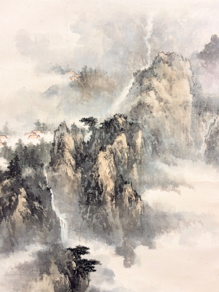 Landscape Hanging Scroll Traditional Japanese Artwork Used