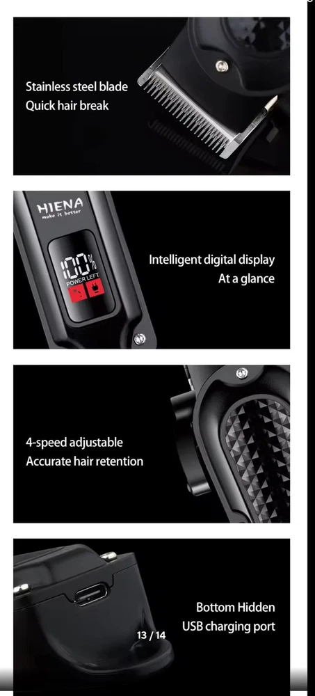 Hiena Hyn-212 Electric Hair Clipper Ubs Rechargeable Cordless Beard Trimmer Men.