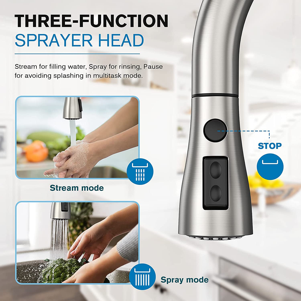 Store New Arrivals Add to Favorite View Feedback Contact Kitchen Faucets, Kitchen Faucet with Pull down Sprayer, High Arc Single Handle Kitchen Sink Faucet with Water Lines, Brushed Nickel Kitchen Faucet with Sprayer, RV Sink Faucets Description Item model number B097XCCWMJ Style Classic Spout Height 8.25 Inches Hole Count 3 Spout Reach 7.13 Inches Country of Origin China Warranty Type extended Hose Length 11.8 Inches Maximum Flow Rate 1.8 Gallons Per Minute Batteries Included? No Handle Location Center Number of Pieces 1 Batteries Required? No Finish Brushed Product Dimensions 7"D x 9.84"W x 14.8"H Material Stainless Steel Installation Type Centerset Model Name B15-INCH HIGH ARC PULL DOWN SPRAYER KITCHEN FAUCET Finish Type Brushed Included Components ['Deck Plate', 'Instruction Manual', 'Mounting Accessory'] Item Package Quantity 1 Spout Design High Arc Number of Handles 1 Item Weight 3.87 pounds Is Electric No Special Features Pull Down Sprayer, Water Saving System, Built In Water Filter, 360 Swivel, Lead Free Special Feature Pull Down Sprayer, Water Saving System, Built In Water Filter, 360 Swivel, Lead Free Valve Type Cartridge Valve Part Number B097XCCWMJ Mounting Type Deck Mount Color Brushed Nickel 15.5-Inch Handle Type Lever Handle Material Stainless Steel Recommended Uses For Product Kitchen Manufacturer Directly Size Middle Specification & Size: Overall height 14 13/16"; Spout Height 8 1/4"; Spout reach 7 1/16". This kitchen sink faucet comes with a matching deck plate to cover up 1 hole or 3 holes. Three-Function sprayer head: Stream for filling water, Spray for rinsing, Pause for avoiding splashing in multitask mode. CEC listed. Flow Rate: 1.8 Gallons Per Minute. Build to last: Eco-friendly and employs heavy-duty, lead-free materials. A best-in-industry ceramic cartridge ensure life span as 500,000 times without drip. Easy Cleaning: Premium multiple layer stainless steel coated kitchen faucet resists rust, corrosion, and tarnish. Wear -resistant finished will not fade or tarnish over time. Ifaucet Benefits: Any problem with a product, please . Product Description Make Your Kitchen More Beautiful Kitchen Faucet with Pull Down Technology Kitchen Faucets Specification & Size Three - Function Sprayer Head Easy To Install Brushed Nicel Kitchen Faucet Packing List ABOUT US We offer the best prices around on high quality products. Our E-store includes media such as books, movies, music and games while offering electronics, toys, sporting apparel, clothing, tools, general home, garden items and more. SHIPPING We are always working hard to ensure your package arrives as soon as possible. Please understand that some factors like weather, high postal traffic, and the performance of shipping companies are outside of our control. We offer free shipping to the lower 48 states and ship within 2 business days of payment, usually sooner. We do not accept P.O. Boxes. Please provide a physical address. For shipping outside of the continental USA, we only use eBay's Global Shipping Program.The item is shipped to KY and then sent to the rest of the world. International customers are responsible for all duties and taxes. Continue to check out in order to calculate costs for shipping the item to your country. Messages regarding eBay's Global Shipping Program MUST be directed at eBay EXCLUSIVELY. RETURNS We offer a 30-Day Return Policy on items which you are not completely satisfied with. You have the option for a full-refund or an exchange of the item. No returns are available on items shipped outside of the USA. PAYMENT We accept PayPal. CONTACT US This page content is yet to come Please ad us to your favorite seller and visit again later Thank You CUSTOMER SATISFACTION We try our very best to make sure every customer is completely satisfied. If there's a problem, message us! We're happy to help. WE ACCEPT Copyright © 2021 AutoDS. | All Rights Reserved