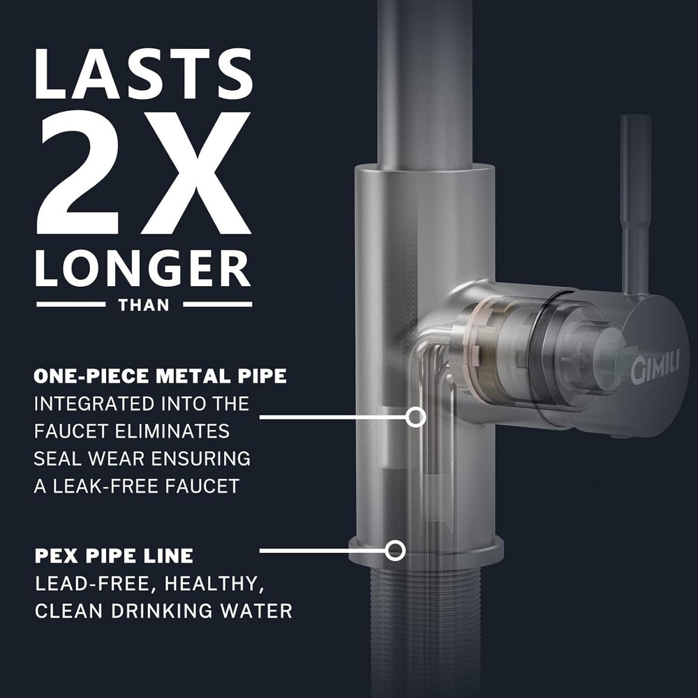 This kitchen faucet is a game-changer! The brushed nickel finish looks sleek and modern, while the solid brass body ensures durability. I love the two-function sprayer—switching between stream and spray makes tasks like filling pots or rinsing dishes effortless. The high arc design gives plenty of clearance, and the pull-down sprayer is super flexible, reaching every corner of the sink. Water pressure stays consistent, and the finish resists fingerprints and rust. Installation was straightforward, and it’s held up beautifully with daily use. Highly recommend for anyone upgrading their kitchen!