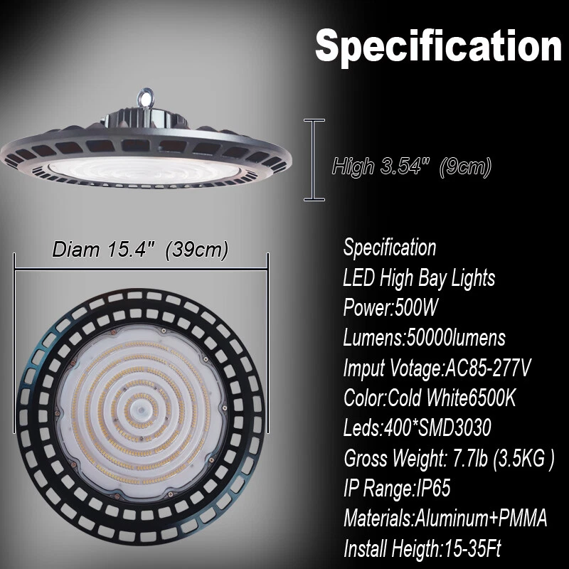 FAST DELIVERY - Ship from New Jersey or Los Angeles Warehouse via FedEx , 3-7 Days Delivered Your Door . SCIENTIFIC DESIGN - 8Ft LED Shop Lights Fixture is Made of 6500K Cold White SMD2835 LED Chip ,Plastic Clear Cover , Aluminum Bracket Housing ,and AC85-277V Constant Current Driver . It can work in -68F to 120F Temperature Conditions EASY INSTALLATION - The Integrated Tube Fixture Can be Install on Wall or Ceiling ,Easily Replace Traditional Fluorescent Tube Bulb . Plug and Play , Free Accessories (Power Cords, Connector , Extension Cords , Clip and Screw ) Come with Tube Lights Together WIDE APPLICATION - Linkable 8Ft Bulbs Widely Used in Garage Ceiling , Barbershop , Schools, Hospitals Basement , Factory Warehouses , Supermarkets Cooler Door , Offices, Shops,Hotels, etc High Bay light 500w LED Factory Commercial Warehouse Light Fixtures 2-PACK 6500K 【 Durable Quality 】 120° Beam Angle 500W 50000LM UFO LED Lights is made of w aterproof IP67 d river (AC85-277V in put c onstant c urrent) , a luminum h ousing , h igh b rightness SMD3030 .The 500W CAIKAG LED High Bay Light is IP65 w aterproof IP r ange ,it is suitable for both dry and wet environments for a 50000 hours lifespan . 【 Fast Delivery 】 Ship from NJ or CA Warehouse via express , 3-7 Days Delivered Your Door ,No Importing Duty 【 Widely Application 】 ThisCommercial High Low Bay Ceiling Lighting is a great illumination fixture for garages, workshops, barn, gymnasiums, factory, exhibition halls, shopping malls, supermarkets, storage yards, basements,warehouses, basements, high shed factories, logistics centers, exhibition halls, sports hall, mining, toll stations, stadium and any other large commercial and industrial places. 【 3 Year Warranty 】 - Any Question or Enquire Will Be Highly Appreciated ,We Will Reply You Within 24 Hours. Replacement or Refund Will be Support for Your Complaint 【 Easy to Install 】 Easy to install CAIKAG LED UFO High Bay Lights with the h ook The 500W UFO Shop L ights c ome with 3-core cable : yellow/green wire to ground wire;brown wire to live wire; blue wire to neutral wire!