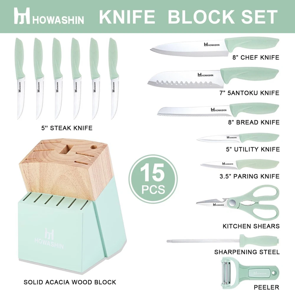 High Carbon German Stainless Steel 15Pc Knife Block Set with Storage