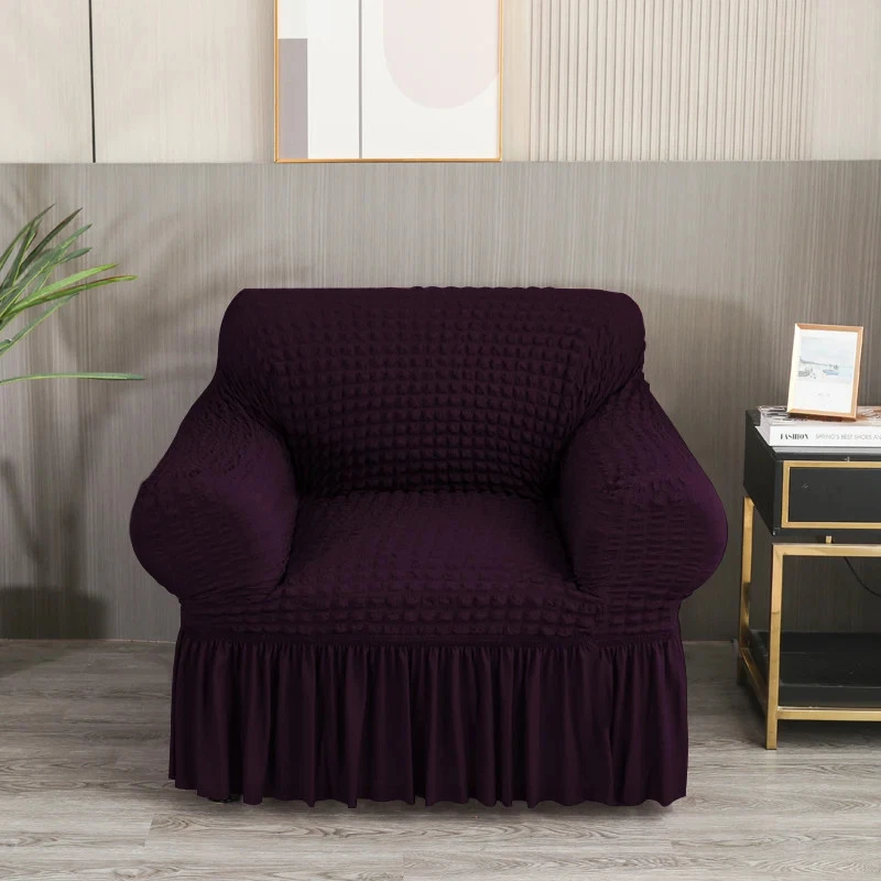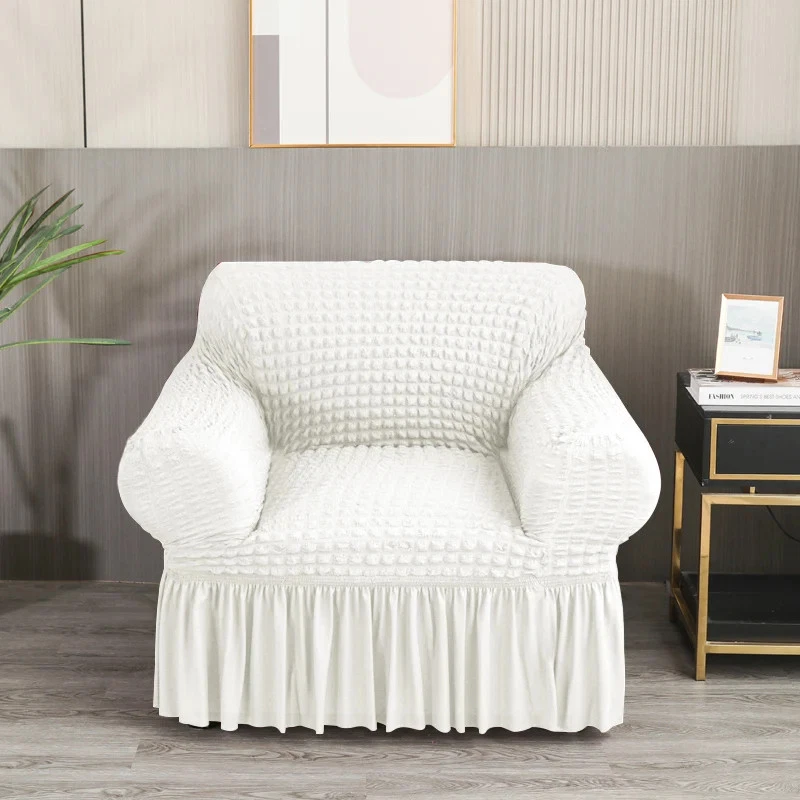 HomeHigh Elastic Bubble Grid Sofa Cover 1-4 Seater with Skirt Hem for All Seasons