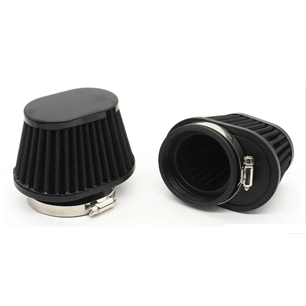 Application: Universal Fitment. Please double check the size before you order. Specification: 100% quality assurance tested, more responsive, less expensive, easier to install. There are no changes to the system necessary. High airflow with excellent filtration. Maintenance interval; up to 80,000 km before cleaning is required, depending on the road use. Catch dust better than an oil soaked filter and to be run DRY. We got many types of air filter, not only the size, contact us freely and get more information. Material & Color: Material: made of high quality Metal. Color: Black. Size:2.15”/55mm Package included: 2x Air Filter Kit. (100% Brand New Never Used Or Installed)