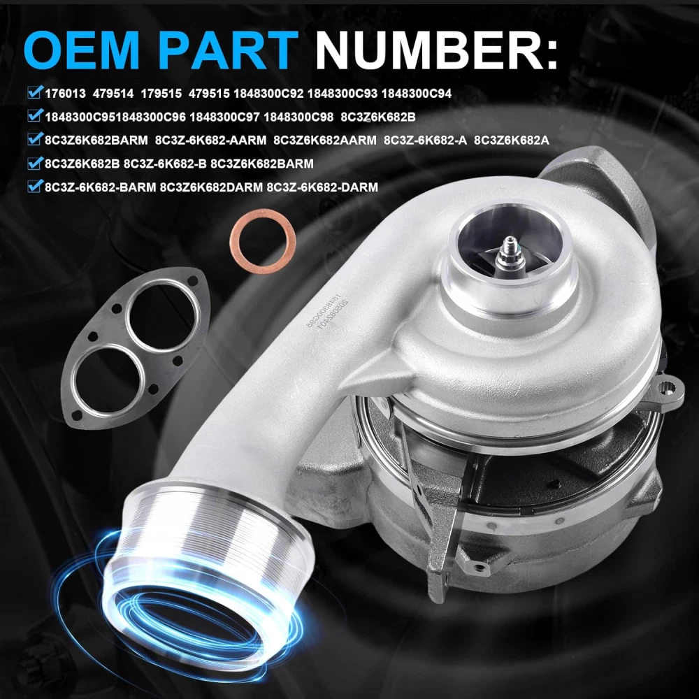 WHY OUR CUSTOMERS KEEP SHOPNG WITH US ✅All items are covered by manufacturer warranty. ✅FAST FREE SHIPPING. ✅Most orders ship within 1 business day with Tracking Number. Customer also can choose two-day or expedited shipping. ✅100% customer satisfaction is backed by a 30-Day Money Back Guarantee for New items and a 30-Day Money Back Guarantee for Recon. FEATURES 1. OEM-quality and size with little modification 2. Turbine housing uses cast iron withstand temperatures up to 700 3. Steel Turbine Wheel made from the special K418 alloy to achieve high oxidation resistance and stability under high temperatures up to 900 High & Low Pressure Turbochargers Kit for Ford F-250/350/450/550 Super Duty 6.4L WHY OUR CUSTOMERS KEEP SHOPNG WITH US ✅All items are covered by manufacturer warranty. ✅FAST FREE SHIPPING. ✅Most orders ship within 1 business day with Tracking Number. Customer also can choose two-day or expedited shipping. ✅100% customer satisfaction is backed by a 30-Day Money Back Guarantee for New items and a 30-Day Money Back Guarantee for Recon. FEATURES 1. OEM-quality and size with little modification 2. Turbine housing uses cast iron withstand temperatures up to 700 3. Steel Turbine Wheel made from the special K418 alloy to achieve high oxidation resistance and stability under high temperatures up to 900 4. Cast aluminium blades with good gas tightness and corrosion resistance 5. The volute is made of nodular cast iron, which can withstand 700 degrees high temperature, and its tensile strength is as high as 450MPa. 6. 100% BALANCING TEST: This Turbocharger you will receive has been balanced using the VSR machine technology. FITMENTS For Ford F-250 Super Duty Cabela's 6.4L 2009-2010, Ford F-250 Super Duty FX4 6.4L 2008-2010 For Ford F-250 Super Duty Harley-Davidson 6.4L 2008-2010, Ford F-250 Super Duty King 6.4L 2008-2010 For Ford F-250 Super Duty Lariat 6.4L 2008-2010, Ford F-250 Super Duty XL 6.4L 2008-2010 For Ford F-250 Super Duty XLT 6.4L 2008-2010, Ford F-350 Super Duty Cabela's 6.4L 2009-2010 For Ford F-350 Super Duty FX4 6.4L 2008-2009, Ford F-350 Super Duty Harley-Davidson 6.4L 2008-2010 For Ford F-350 Super Duty King 6.4L 2008-2010,Ford F-350 Super Duty Lariat 6.4L 2008-2010 For Ford F-350 Super Duty XL 6.4L 2008-2010, Ford F-350 Super Duty XLT 6.4L 2008-2010 For Ford F-450 Super Duty Base 6.4L 2010, Ford F-450 Super Duty Harley-Davidson 6.4L 2009-2010 For Ford F-450 Super Duty King 6.4L 2008-2010, Ford F-450 Super Duty Lariat 6.4L 2008-2010 For Ford F-450 Super Duty XL 6.4L 2008-2010, Ford F-450 Super Duty XLT 6.4L 2008-2010 For Ford F-550 Super Duty Base 6.4L 2008-2009, Ford F-550 Super Duty Lariat 6.4L 2008-2010 For Ford F-550 Super Duty XL 6.4L 2008-2010, Ford F-550 Super Duty XLT 6.4L 2008-2010 OEM NUMBER 179523, 1848301C1, 4307201R1, 8471470, 14030189-104, 14030189-105, 14030189101, 8C3Z-6K682-AARM, 8C3Z-6K682-A, 1848301C1, 1848300C92, 1848300C93, 1848300C94, 1848300C95 30318164. 176013 479514 179515 479515 1848300C92 1848300C93 1848300C94 1848300C95 1848300C96 1848300C97 1848300C98 8C3Z6K682B 8C3Z6K682BARM 8C3Z-6K682-AARM 8C3Z6K682AARM 8C3Z-6K682-A 8C3Z6K682A 8C3Z6K682B 8C3Z-6K682-B 8C3Z6K682BARM 8C3Z-6K682-BARM 8C3Z6K682DARM 8C3Z-6K682-DARM. ITEM INCLUDES High & Low Pressure Turbo Turbocharger Kit with Gasket FREE RETURN If you are unhappy with your purchase for any reason, you can return it to us in an un-used condition in the original packaging within 30 days of purchase and we'll give you a refund or exchange. The refund/Exchange will not include postage/eBay costs. Please note you MUST contact us to obtain a Return Authorization Number before returning any part. Any parcel without the Return Authorization Number will be rejected *If your item is faulty or was incorrect, you must contact our sales representative before returning the parcel and we will endeavour to solve the problem effectively. Video or picture is required to show the item 、condition before we issue the Return Authorization Number. * Professional installation is highly recommended (No Instruction Included) * For any needs please contact us Item Specifics Brand : susucar Type : Turbocharger OE/OEM Part Number : 176013, 479514, 479523, 8C3Z6K682B, 8C3Z6K682BRM Interchange Part Number : 1848300C95, 1848300C96, 1848300C97, 1848300C98, 8C3Z6K682DARM Superseded Part Number : 8C3Z-6K682-DARM, 8C3Z6K682BARM Compatible Makes : Ford Compatible Models : Ford F-250/250/350/450/550 Super Duty Compatible Years : 2008-2010 Compatible Engine : 6.4L V8 Material : high-strength aluminum and iron Items Included : High & Low Turbo Turbocharger Kit with Gasket Package Dimensions : 22.05 x 19.69 x 12.2 inches Item Weight : 84.6 pounds Manufacturer Warranty : 2 Years Fitment Type : Direct Replacement OE Spec or Performance/Custom : OE Spec About My Store : 100% SATISFACTION, 100% Source manufacturer Manufacturer : SUSUCARpartsWhosale Note : Please contact us to confirm the application before Purchase other part number 1 : 8C3Z-6K682-BARM, 8C3Z6K682AARM, 8C3Z-6K682-AARM Turbo Charger Low Pressure 1 : 176013 479514 179515 479515 1848300C92 1848300C93 Turbo Charger Low Pressure 2 : 1848300C94 1848300C95 1848300C96 1848300C97 1848300C98 Turbo Charger Low Pressure 3 : 8C3Z6K682B 8C3Z6K682BARM 8C3Z-6K682-AARM 8C3Z6K682AARM Turbo Charger Low Pressure 4 : 8C3Z-6K682-A 8C3Z6K682A 8C3Z6K682B 8C3Z-6K682-B Turbo Charger Low Pressure 5 : 8C3Z6K682BARM 8C3Z-6K682-BARM 8C3Z6K682DARM 8C3Z-6K682-DARM Why choose US? Susucar is passionate about maintaining our culture of demonstrating value and building personal client relationships in perfecting the client experience. We are also a culture of giving back to the community and preserving our precious planet - a passion that runs deep throughout our Company. Every single item we sell goes through thorough inspection processes to make sure it works perfectly for you. If for any reason you are not satisfied with our product, please shoot us a message. We will do everything in our