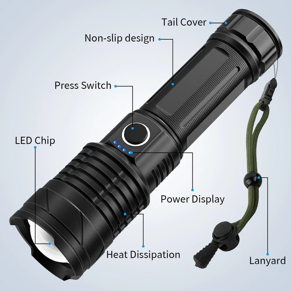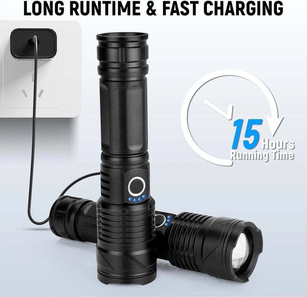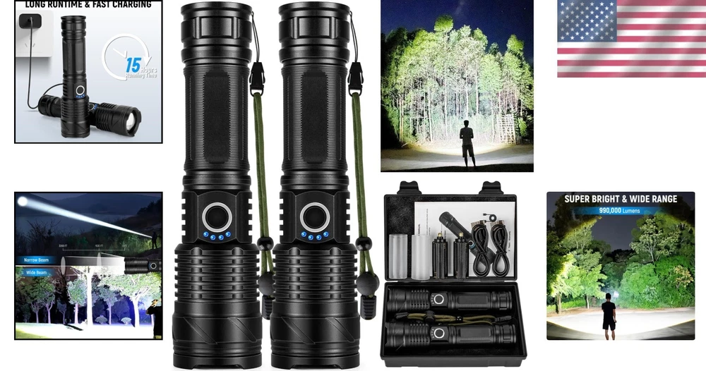 High Lumens Rechargeable Flashlights - Durable Aluminum, 15-Hour Battery Life ‹ › ‹ › ‹ › ‹ › ‹ › ‹ › ‹ › ‹ › ‹ › ‹ › ‹ › High Lumens Rechargeable Flashlights Illuminate your world with our High Lumens Rechargeable Flashlights. Constructed from durable military-grade aluminum, these powerful lights are designed for adventurers and outdoor enthusiasts alike, ensuring you never find yourself in the dark. Product Highlights: 99,000 LUMENS & 3,280 FEET - Experience unparalleled brightness with up to 990,000 lumens and an impressive range that can illuminate up to 3,280 feet away. USB FAST CHARGING - Enjoy the convenience of quick USB charging, faster than traditional micro charging methods, making your flashlight ready for action in no time. 15 HOURS OF BATTERY LIFE - With a runtime of up to 15 hours on a single charge, this flashlight is essential for prolonged outdoor adventures. ADJUSTABLE BEAM - Effortlessly switch between wide and narrow beams to customize your lighting experience based on your specific needs. IPX6 WATERPROOF & ANTI-FALL - Built to withstand the elements, these flashlights are IPX6 rated for waterproofness and crafted from high-strength aluminum alloy for exceptional durability. Why Choose Our Flashlights? Extra Brightness: Featuring upgraded LED bulb chips, you can expect superior brightness performance. Fast Recharging: Experience three times the speed of traditional charging methods. Extended Runtime: With up to 15 hours of nonstop illumination, this flashlight outlasts the competition. Power Status Display: Clear LED indicators provide an informed glance at battery levels, showing 25%, 50%, 75%, and 100% status. Durable Construction: Aviation aluminum ensures your flashlight resists drops and abrasions. Your Safety Lantern Awaits! Whether you're camping under the stars, driving down winding roads, or seeking out hidden paths in the dark, our High Lumens Rechargeable Flashlights are your dependable companions. Join the thousands who trust in our promise of excellence and reliability. What You Will Get: Enjoy 2 years of free replacement service and prompt 24-hour consultation. Should you have any inquiries about your flashlight, we are dedicated to ensuring your utmost satisfaction. Bring light to your life—invest in your safety and outdoor adventures with our exceptional flashlights today! Shipping Free & Fast Shipping - We offer free shipping to most of the USA with a normal delivery time of 3-7 days. However, due to the current situation, additional delivery time (up to 3 weeks) may be required for some items. Alternative Carriers - We may use alternative carriers (e.g. USPS, FedEx, UPS, etc.) to ensure your package arrives safely and on time. Due to the use of multiple carriers, we are unable to provide a tracking number automatically. Handling Time - Orders are processed and shipped within 1-2 business days of receiving cleared payment. Shipping Restrictions - Shipping to Alaska, Hawaii, Puerto Rico, Guam, and other US territories may incur shipping charges or delivery restrictions. Please contact us before ordering, or your order can be refunded/cancelled. State Restrictions - There may be restrictions based on your state of purchase. For example, certain items may not be shipped to California due to state regulations. Contact for Tracking Updates - If you require tracking updates or have any concerns about the delivery of your order, please feel free to contact us, and we will be happy to assist you. Return 30-Day Hassle-Free Returns - We want you to be completely satisfied with your purchase. If you are not, you can return the item within 30 days of receiving it for a full refund or exchange. Easy Return Process - To start a return, simply contact us and we will provide you with a prepaid return shipping label and detailed instructions. Restocking Fee - There are no restocking fees for returns. However, the buyer is responsible for return shipping costs if the return is not due to a seller's error. Refund Processing Time - Refunds will be processed within 5 business days of receiving the returned item in its original condition. Payment We accept all major credit cards, PayPal, and Apple Pay for your convenience. Your payment information is secure and encrypted to ensure a safe and seamless transaction. Please complete your payment within 3 days of purchase to avoid any delays in shipping. Feedback Your feedback is extremely important to us. We strive to provide the best products and customer service possible. If you are satisfied with your purchase, please take a moment to leave us a positive review. If you have any concerns or issues with your order, please contact us before leaving negative feedback. We are committed to resolving any problems and ensuring your satisfaction. Contact Us If you have any questions or concerns, please feel free to reach out to our customer support team. You can contact us through the eBay messaging system. We are available Monday to Friday, 9:00 am to 5:00 pm EST, and we will do our best to respond to your inquiry within 24 hours. Thank you for supporting our small family business! UPC: Not Set Voltage: Battery Powered Item Height: Rechargeable LED Flashlights Item Length: Rechargeable LED Flashlights Item Weight: 1.41 lb Item Width: Not Set Model: Not Set Lumens: 990000 Number of LEDs: Multiple (not specified) Unit Quantity: 2 Features: Batteries Included,Rechargeable,USB Fast Charge,990,000 Lumens,Super Bright,Power Display,LED,Adjustable 5 Lighting Modes,IPX6 Waterproof,Long Range,High Lumens,High Power Material: Aluminum,Military Alloy Brand: Unbranded Type: Flashlight Lighting Technology: LED Power Source: Battery Operating Range: 3280 feet MPN: Not Set Battery Technology: NiCad Number of Batteries: 2 Color: Black Country/Region of Manufacture: Not Set IP Rating: IPX6 Operating Time: 15 Hours Number of Lights: 1-3 Unit Type: lb Personalize: Not Set