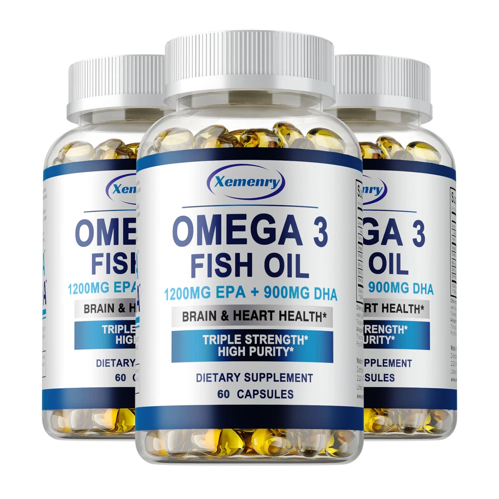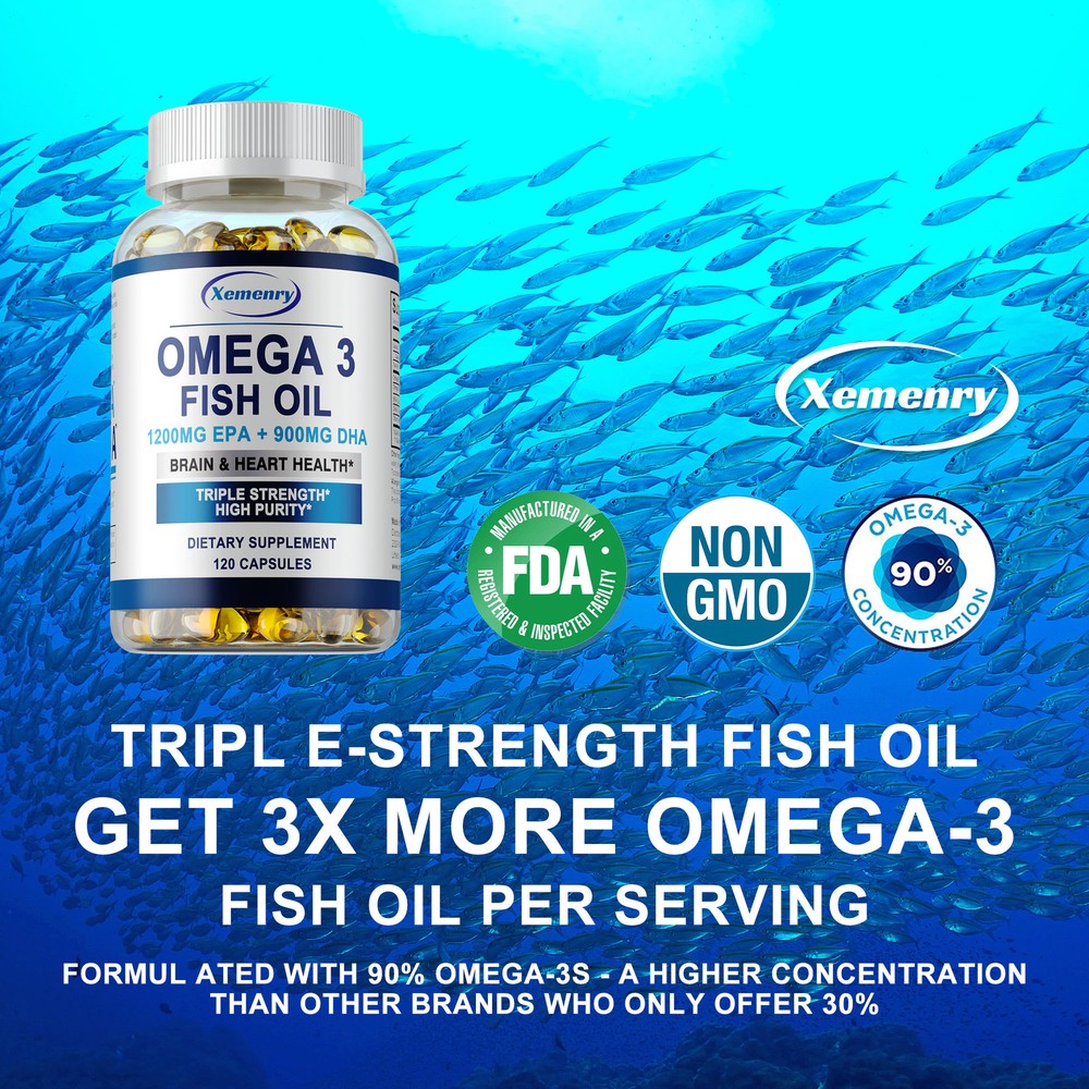 Effects: Heart, Joint, Eye & Skin Health Ingredients: Omega 3 Fish Oil, EPA, DHA Directions: Take 2 capsules once daily after a meal. Shipping: Ships within 48 hours on working days. Shelf life: 2 years Description: Easy-to-digest omega oil supplement capsules contain the highest levels of omega 3 fatty acids, no enteric coating and a premium burp-free coating, meaning no fishy smell, GI irritation or nausea, perfect for daily fish oil supplementation! Premium Omega 3 Fish Oil Capsules, Our Highest Concentrate, 3600mg Triple Strength, Molecularly Distilled Premium Omega 3 Softgels, Providing 1200mg Essential Fatty Acids Per Serving. Our unique capsules contain 3X more fish oil than many other leading brands! Our Highest Quality, Potency & Purity! Forget cheap, low-concentration EPA and DHA Omega 3 supplements, our easy-to-swallow Omega 3 fish oil vitamins for men and women are great for supporting heart health, joint support, nervous system function, weight loss, cholesterol, circulatory system, colon cleansing, and contain over 1200 milligrams of EPA and 900 milligrams of DHA for skin, hair and more! Document