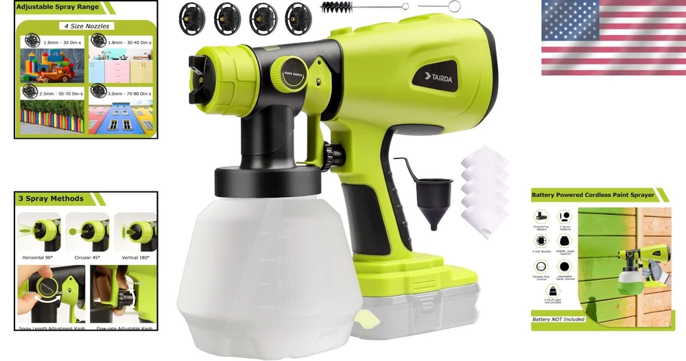 High Power Cordless Paint Sprayer for Outdoor Projects - 1100ML/min Flow Rate ‹ › ‹ › ‹ › ‹ › ‹ › ‹ › ‹ › ‹ › ‹ › ‹ › ‹ › High Power Cordless Paint Sprayer Transform your outdoor projects with our state-of-the-art High Power Cordless Paint Sprayer, boasting an impressive 1100 ML/min flow rate. This professional-grade tool is your ultimate solution for efficient and seamless painting, whether you’re a DIY enthusiast or a seasoned professional. Key Features: Powered by Battery: Compatible with Ryobi Li-ion & Ni-CD Batteries (tool only - no battery or charger included). Enjoy the freedom of being cord-free while working on any job site. Versatile Spray Patterns: Choose from 3 distinct spray patterns – vertical, horizontal, and circular – easily adjustable for precision work. Nozzle Size Options: Comes with 4 interchangeable nozzles (including pre-installed 2.5mm), allowing for a customized painting experience to suit your project needs. Powerful Performance: High power brushless motor reduces noise and ensures extended working time with maximum viscosity of 80 DIN/sec for effortless application. Lightweight & Portable: Weighing only 2.5lbs, it’s easy to handle and transport for projects around your home, garden, or job site. Benefits: Efficiently completes painting tasks faster than rollers or brushes. Perfect for a variety of applications including doors, windows, walls, fences, ceilings, and much more. Manage your paint flow with ease using the adjustable flow rate knob for different fluid viscosities. Designed for easy disassembly and cleaning, ensuring a hassle-free maintenance experience. Equipped with a low-voltage device for battery protection, assuring safe usage. Why Choose Our Cordless Paint Sprayer? Don’t let cumbersome cords and heavy equipment slow you down. Our High Power Cordless Paint Sprayer delivers exceptional performance, flexibility, and ease of use to enhance your painting projects. With its powerful motor, adjustable settings, and lightweight design, take your home improvement tasks to new heights of excellence. Unleash your creativity and get your painting jobs done faster with our cordless sprayer – an investment in quality that pays off with every stroke. Order yours today and elevate your outdoor painting experience! Shipping Free & Fast Shipping - We offer free shipping to most of the USA with a normal delivery time of 3-7 days. However, due to the current situation, additional delivery time (up to 3 weeks) may be required for some items. Alternative Carriers - We may use alternative carriers (e.g. USPS, FedEx, UPS, etc.) to ensure your package arrives safely and on time. Due to the use of multiple carriers, we are unable to provide a tracking number automatically. Handling Time - Orders are processed and shipped within 1-2 business days of receiving cleared payment. Shipping Restrictions - Shipping to Alaska, Hawaii, Puerto Rico, Guam, and other US territories may incur shipping charges or delivery restrictions. Please contact us before ordering, or your order can be refunded/cancelled. State Restrictions - There may be restrictions based on your state of purchase. For example, certain items may not be shipped to California due to state regulations. Contact for Tracking Updates - If you require tracking updates or have any concerns about the delivery of your order, please feel free to contact us, and we will be happy to assist you. Return 30-Day Hassle-Free Returns - We want you to be completely satisfied with your purchase. If you are not, you can return the item within 30 days of receiving it for a full refund or exchange. Easy Return Process - To start a return, simply contact us and we will provide you with a prepaid return shipping label and detailed instructions. Restocking Fee - There are no restocking fees for returns. However, the buyer is responsible for return shipping costs if the return is not due to a seller's error. Refund Processing Time - Refunds will be processed within 5 business days of receiving the returned item in its original condition. Payment We accept all major credit cards, PayPal, and Apple Pay for your convenience. Your payment information is secure and encrypted to ensure a safe and seamless transaction. Please complete your payment within 3 days of purchase to avoid any delays in shipping. Feedback Your feedback is extremely important to us. We strive to provide the best products and customer service possible. If you are satisfied with your purchase, please take a moment to leave us a positive review. If you have any concerns or issues with your order, please contact us before leaving negative feedback. We are committed to resolving any problems and ensuring your satisfaction. Contact Us If you have any questions or concerns, please feel free to reach out to our customer support team. You can contact us through the eBay messaging system. We are available Monday to Friday, 9:00 am to 5:00 pm EST, and we will do our best to respond to your inquiry within 24 hours. Thank you for supporting our small family business! UPC: Not Set Unit Quantity: 1 Items Included: Spray Gun Tip,Cordless Paint Sprayer,4 Nozzles,User Manual Compatible Material: Exterior Paint,Interior Paint,Primer,Stain Features: Adjustable Pattern Control,Adjustable Spray Pattern,Lightweight,Portable Design,Easy to Clean,Flow Rate Adjustment,High Power Motor,Max Viscosity Cup Suitable For: Not Set Brand: Unbranded Type: Not Set Frame Configuration: Not Set Pump Type: Not Set Power Source: Battery Powered Horsepower: Not Set MPN: Not Set Number of Settings: Not Set Color: Not Set Model: Not Set Spray Tip Size: Not Set Country/Region of Manufacture: Not Set Hose Length: 1.5 Meters Operating Pressure: Not Set Cup/Hopper Capacity: Not Set Spray Tip Pattern Size: Not Set Item Width: Not Set Item Height: Not Set Power: Not Set Trigger Configuration: Not Set Manufacturer Warranty: Not Set Item Weight: Not Set Flow Rate: No