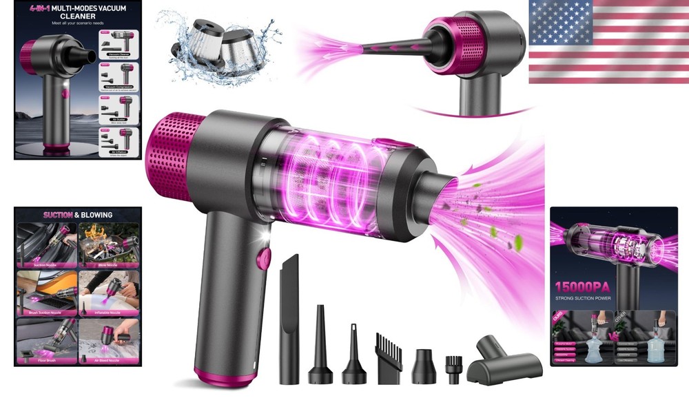 High Power Handheld Car Vacuum Cleaner - 15000PA Suction, USB Charging, Portable ‹ › ‹ › ‹ › ‹ › ‹ › ‹ › ‹ › ‹ › ‹ › High Power Handheld Car Vacuum Cleaner Experience effortless cleaning precision with this powerful handheld vacuum cleaner, designed for both your vehicle and home. Key Features: 4-IN-1 Versatility: This handheld vacuum cleaner comes with 7 versatile accessories that allow you to switch between suction, blowing, inflation, and vacuum compression seamlessly to suit various situations. Powerful Suction: With an impressive 15000PA of suction power generated by a high-performance motor that operates at 86,000 RPM, this vacuum makes light work of debris, dirt, and dust on any surface - from sofas and carpets to your car's interior. Quiet Operation: Enjoy a tranquil cleaning experience with noise levels as low as 40dB, allowing you to maintain peace and quiet while efficiently tidying up. Dual Filtration System: The innovative dual filtration system includes a reusable steel filter for larger particles and a washable HEPA filter for microscopic dust. Both filters work together to prevent clogging and maintain superior suction efficacy. Fast & Safe Charging: Boasting a built-in 4000mAh battery, this vacuum can be quickly recharged through USB connection. Charge it fully in just 2.5 hours for a robust 25 minutes of operation. Lightweight & Portable: Weighing only 0.88LB, this compact cleaner is easy to store and requires minimal space while giving you the freedom to clean with ease anywhere. LED Light: Equipped with an illuminating LED light, this vacuum not only allows you to the darkest corners but can also serve as an emergency flashlight when needed. Why Choose Our Handheld Car Vacuum? For those who value efficiency and convenience, this High Power Handheld Car Vacuum Cleaner is an essential tool to keep your environment clean and tidy. Its robust suction capabilities, versatile functionality, and thoughtful design make it an unrivaled choice in portable cleaning solutions. Say goodbye to cumbersome cleaning tools and embrace the modern solution to cleanliness. Elevate your cleaning game and make this remarkable handheld vacuum your trusted cleaning companion today! Shipping Free & Fast Shipping - We offer free shipping to most of the USA with a normal delivery time of 3-7 days. However, due to the current situation, additional delivery time (up to 3 weeks) may be required for some items. Alternative Carriers - We may use alternative carriers (e.g. USPS, FedEx, UPS, etc.) to ensure your package arrives safely and on time. Due to the use of multiple carriers, we are unable to provide a tracking number automatically. Handling Time - Orders are processed and shipped within 1-2 business days of receiving cleared payment. Shipping Restrictions - Shipping to Alaska, Hawaii, Puerto Rico, Guam, and other US territories may incur shipping charges or delivery restrictions. Please contact us before ordering, or your order can be refunded/cancelled. State Restrictions - There may be restrictions based on your state of purchase. For example, certain items may not be shipped to California due to state regulations. Contact for Tracking Updates - If you require tracking updates or have any concerns about the delivery of your order, please feel free to contact us, and we will be happy to assist you. Return 30-Day Hassle-Free Returns - We want you to be completely satisfied with your purchase. If you are not, you can return the item within 30 days of receiving it for a full refund or exchange. Easy Return Process - To start a return, simply contact us and we will provide you with a prepaid return shipping label and detailed instructions. Restocking Fee - There are no restocking fees for returns. However, the buyer is responsible for return shipping costs if the return is not due to a seller's error. Refund Processing Time - Refunds will be processed within 5 business days of receiving the returned item in its condition. Payment We accept all major credit cards, PayPal, and Apple Pay for your convenience. Your payment information is secure and encrypted to ensure a safe and seamless transaction. Please complete your payment within 3 days of purchase to avoid any delays in shipping. Feedback Your feedback is extremely important to us. We strive to provide the best products and customer service possible. If you are satisfied with your purchase, please take a moment to leave us a positive review. If you have any concerns or issues with your order, please contact us before leaving negative feedback. We are committed to resolving any problems and ensuring your satisfaction. Contact Us If you have any questions or concerns, please feel free to out to our customer support team. You can contact us through the eBay messaging system. We are available Monday to Friday, 9:00 am to 5:00 pm EST, and we will do our best to respond to your inquiry within 24 hours. Buy it now and enjoy a pleasant shopping experience! Unit Quantity: 0.88 lb Features: Portable,4-in-1 Modes,Powerful 15000PA Suction,Dual Filtration System,LED Light,Cordless,Fast Charging,Lightweight Design Included Accessories: Manual,Type-C Charging Cable,Vacuum Cleaner Type: Handheld Runtime: 25 min Charge Time: 2.5 hrs Color: Grey/Pink Power: 120 W Filters: HEPA Voltage: 12 V Capacity: Less Than 0.3 L Item Weight: Less Than 10 lb Protection Plan: No Coverage