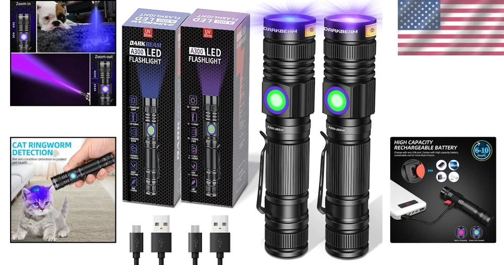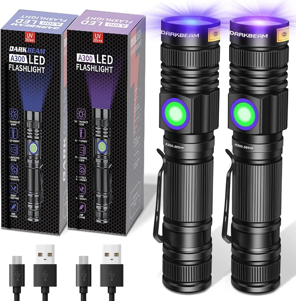 High Power UV Flashlights 365nm/395nm - USB Rechargeable & Zoomable for Stains