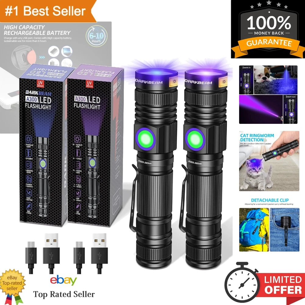 High Power UV Flashlights 365nm/395nm - USB Rechargeable & Zoomable for Stains ‹ › ‹ › ‹ › ‹ › ‹ › ‹ › ‹ › ‹ › ‹ › ‹ › High Power UV Flashlights 365nm/395nm Invisible Yet Potent 365NM Light : Experience the dedicated detection spectrum with minimal visible light leakage. This 10W high power UV 365nm light is your go-to for meticulous detection, excelling at identifying fluorescent reactions, security codes, and even banknotes. Its effectiveness shines in darkness, making it ideal for rock hounding and similar pursuits. Illuminating 395NM Black Light : Also boasting 10W of power, this flashlight operates superbly in both natural light and darkness. Perfect for various applications from pet urine detection, AC leak checks, UV resin curing, currency, and jewelry identification, to revealing hidden cracks and glue in repairs. It’s an essential multi-functional ultraviolet light for everyday use. Long Battery Life & USB Rechargeable : Enjoy an impressive 8-hour runtime powered by an included rechargeable battery, fully charged within 3 hours via any USB device. The power indicator helps maintain battery life, turning red when low and green when fully charged. A reliable companion for household tasks and even detecting scorpions, stamps, and ores. Adjustable Zoom Lens Design : Easily zoom in or out to focus on specific areas, facilitating efficient searches without bending or squatting. With a single lighting mode, operation is a breeze; just click to turn on and again to turn off. The case, crafted from robust aluminum alloy, ensures durability and optimal heat dissipation. Compact Waterproof Design : Small and lightweight, it's perfect for one-handed operation. Comes with a convenient mount clip for easy storage in pockets, backpacks, or toolboxes. This UV flashlight easily identifies hidden stains on various surfaces around your home or car. Compliant with IPX4 waterproof standards, it withstands humid conditions without worry. Why Choose Our High Power UV Flashlight? Elevate your detection game with our powerful UV flashlights that combine strength and functionality. Choose between the 365nm and 395nm wavelengths based on your needs, and enjoy a reliable, rechargeable flashlight that fits seamlessly into your lifestyle. With a guarantee of satisfaction and a hassle-free money-back option, enhance your searching efficiency today. Shipping Free & Fast Shipping - We offer free shipping to most of the USA with a normal delivery time of 3-7 days. However, due to the current situation, additional delivery time (up to 3 weeks) may be required for some items. Alternative Carriers - We may use alternative carriers (e.g. USPS, FedEx, UPS, etc.) to ensure your package arrives safely and on time. Due to the use of multiple carriers, we are unable to provide a tracking number automatically. Handling Time - Orders are processed and shipped within 1-2 business days of receiving cleared payment. Shipping Restrictions - Shipping to Alaska, Hawaii, Puerto Rico, Guam, and other US territories may incur shipping charges or delivery restrictions. Please contact us before ordering, or your order can be refunded/cancelled. State Restrictions - There may be restrictions based on your state of purchase. For example, certain items may not be shipped to California due to state regulations. Contact for Tracking Updates - If you require tracking updates or have any concerns about the delivery of your order, please feel free to contact us, and we will be happy to assist you. Return 30-Day Hassle-Free Returns - We want you to be completely satisfied with your purchase. If you are not, you can return the item within 30 days of receiving it for a full refund or exchange. Easy Return Process - To start a return, simply contact us and we will provide you with a prepaid return shipping label and detailed instructions. Restocking Fee - There are no restocking fees for returns. However, the buyer is responsible for return shipping costs if the return is not due to a seller's error. Refund Processing Time - Refunds will be processed within 5 business days of receiving the returned item in its original condition. Payment We accept all major credit cards, PayPal, and Apple Pay for your convenience. Your payment information is secure and encrypted to ensure a safe and seamless transaction. Please complete your payment within 3 days of purchase to avoid any delays in shipping. Feedback Your feedback is extremely important to us. We strive to provide the best products and customer service possible. If you are satisfied with your purchase, please take a moment to leave us a positive review. If you have any concerns or issues with your order, please contact us before leaving negative feedback. We are committed to resolving any problems and ensuring your satisfaction. Contact Us If you have any questions or concerns, please feel free to reach out to our customer support team. You can contact us through the eBay messaging system. We are available Monday to Friday, 9:00 am to 5:00 pm EST, and we will do our best to respond to your inquiry within 24 hours. Thank you for supporting our small family business! UPC: Not Set Voltage: 5 volts Item Height: UV Flashlight Item Length: UV Flashlight Item Weight: 102 grams Item Width: Not Set Model: Not Set Lumens: Not specified Number of LEDs: Not specified Unit Quantity: 2 Pack Features: Rechargeable,Waterproof,With Clip,Zoomable,High Power Material: Aluminum Brand: Unbranded Type: Flashlight Lighting Technology: LED Power Source: Battery Operating Range: Not specified MPN: Not Set Battery Technology: Lithium Ion Number of Batteries: 2 Color: UV365 & UV395 Country/Region of Manufacture: Not Set IP Rating: IPX4 Operating Time: 8 hours Number of Lights: 1 Unit Type: Not Set Personalize: Not Set