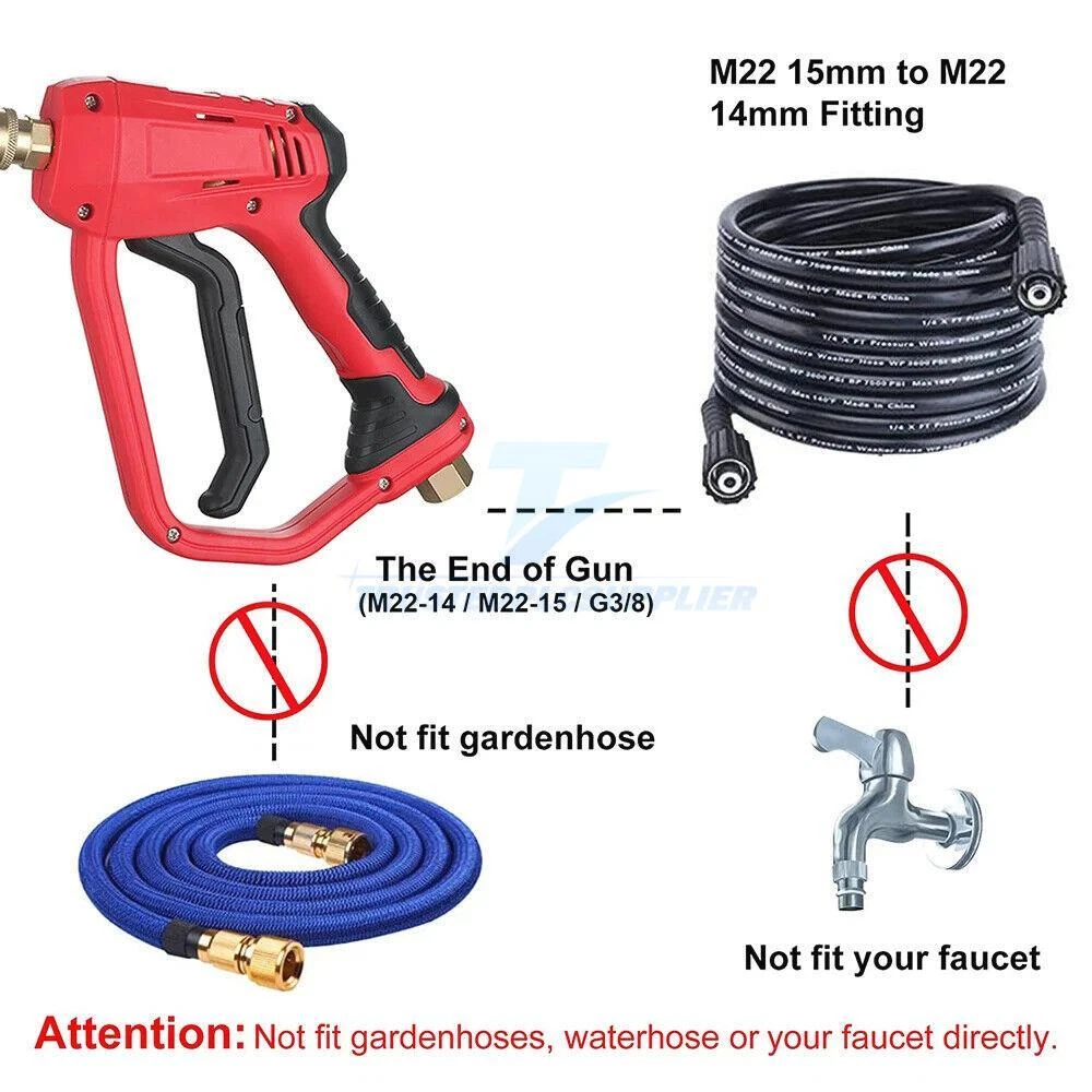 UPC: Does not apply Color: Red Features: M22 Connection, Quick Connect Brand: trustedplcsupplier Manufacturer Warranty: 1 Year gtin13: Does not apply Power Source: GAS Type: Cold Water Pressure Washer Model: Car Washer spray gun Maximum Pressure: 4000 psi Style: modern