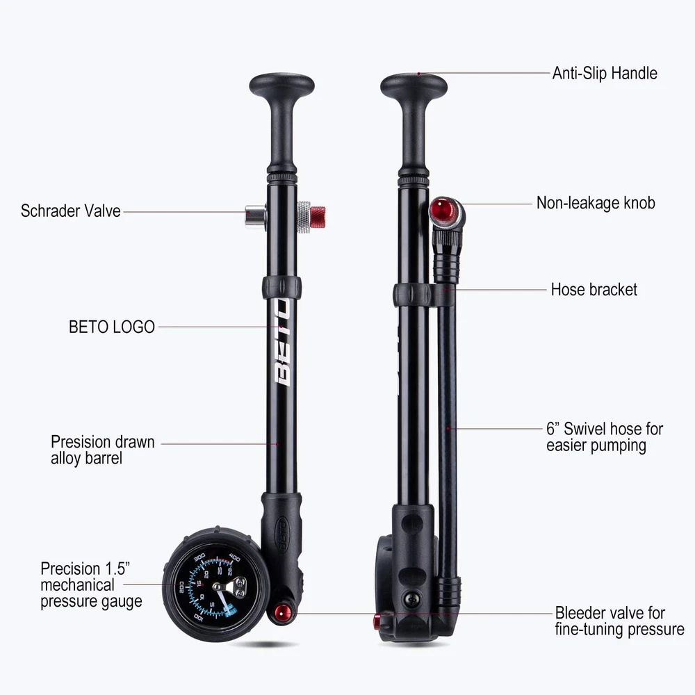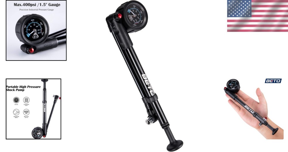 High Pressure MTB Bike Shock Pump 400 PSI No-Loss Schrader Valve for Suspension ‹ › ‹ › ‹ › ‹ › ‹ › ‹ › ‹ › ‹ › ‹ › ‹ › High Pressure MTB Bike Shock Pump 400 PSI No-Loss Schrader Valve for Suspension Features: Easy to use ergonomic handle for extra comfort during pumping. 6-inch swivel hose for enhanced maneuverability. 1.5-inch industrial gauge for easy and precise pressure readings. 2 Stage Anti-Leak high pressure pump head that delivers a secure valve connection. Accurate pressure up to 400 PSI (28 bar) with a no-loss metal head for Schrader valve. Integrated pressure release button for effortless adjustment. Lightweight and compact design, ideal for carrying in a backpack or hip-bag. Benefits: Ergonomic comfort and easy operation for all cyclists. Precise measurements ensure optimal suspension performance. Portability allows you to be prepared for outdoor adventures or emergencies. Durable CNC alloy structure designed to withstand rigorous use. Designed by industry leaders with over 30 of experience in biking accessories. Your Journey's Essential Companion For the dedicated cyclist, maintaining optimal suspension is key to an exhilarating ride. The High Pressure MTB Bike Shock Pump boasts a sophisticated design that ensures you achieve the perfect pressure without hassle. Lightweight and compact, this essential tool can be stashed away in your backpack or hip-bag, ready to support your biking endeavors wherever your adventures lead you. With its ergonomic handle, 6-inch swivel hose, and precision gauge, this pump not only elevates your biking experience but also reassures you of its quality, manufactured by a world-renowned factory with decades of engineering excellence. Never let a flat shock ruin your ride again - invest in the High Pressure MTB Bike Shock Pump and empower your cycling journey today! Shipping Free & Fast Shipping - We offer free shipping to most of the USA with a normal delivery time of 3-7 days. However, due to the current situation, additional delivery time (up to 3 weeks) may be required for some items. Alternative Carriers - We may use alternative carriers (e.g. USPS, FedEx, UPS, etc.) to ensure your package arrives safely and on time. Due to the use of multiple carriers, we are unable to provide a tracking number automatically. Handling Time - Orders are processed and shipped within 1-2 business days of receiving cleared payment. Shipping Restrictions - Shipping to Alaska, Hawaii, Puerto Rico, Guam, and other US territories may incur shipping charges or delivery restrictions. Please contact us before ordering, or your order can be refunded/cancelled. State Restrictions - There may be restrictions based on your state of purchase. For example, certain items may not be shipped to California due to state regulations. Contact for Tracking Updates - If you require tracking updates or have any concerns about the delivery of your order, please feel free to contact us, and we will be happy to assist you. Return 30-Day Hassle-Free Returns - We want you to be completely satisfied with your purchase. If you are not, you can return the item within 30 days of receiving it for a full refund or exchange. Easy Return Process - To start a return, simply contact us and we will provide you with a prepaid return shipping label and detailed instructions. Restocking Fee - There are no restocking fees for returns. However, the buyer is responsible for return shipping costs if the return is not due to a seller's error. Refund Processing Time - Refunds will be processed within 5 business days of receiving the returned item in its condition. Payment We accept all major credit cards, PayPal, and Apple Pay for your convenience. Your payment information is secure and encrypted to ensure a safe and seamless transaction. Please complete your payment within 3 days of purchase to avoid any delays in shipping. Feedback Your feedback is extremely important to us. We strive to provide the best products and customer service possible. If you are satisfied with your purchase, please take a moment to leave us a positive review. If you have any concerns or issues with your order, please contact us before leaving negative feedback. We are committed to resolving any problems and ensuring your satisfaction. Contact Us If you have any questions or concerns, please feel free to out to our customer support team. You can contact us through the eBay messaging system. We are available Monday to Friday, 9:00 am to 5:00 pm EST, and we will do our best to respond to your inquiry within 24 hours. Buy it now and enjoy a pleasant shopping experience! Item Weight: 5.19 ounces Unit Quantity: 1 Valve Type: Schrader Valve Gauge Type: Analog Features: Compact,Ergonomic Molded Handle,Flexible Hose,Manometer,With Pressure Gauge,No-Loss Valve,Precision Gauge Sport/Activity: Cycling Set Includes: Shock Pump Material: Metal Type: Suspension/Shock Pump Number of Adapters: 1 Color: Black Measurement Units: PSI Maximum Working Pressure: 400 PSI Power Source: Corded Electric Unit Type: oz