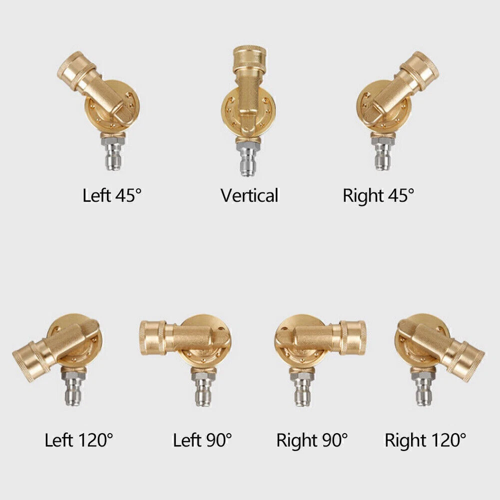 Feature: 1. Quick interface for easy installation and disassembly. 2. Reliable structure, high pressure resistance, up to 4500 psi. 3. The brass body and stainless steel inlet make it resistant to corrosion, high pressure and not easy to rust. 4. Adjustable 240° for 7 different cleaning angles, 1/4in plug inlet and 1/4in quick socket, easy to fix between nozzle head and rod. 5. Built-in designed 7 positions inside in spring structure which keep the position spinning away, plus ball-lock design to double secure the 5 angles. It’s safe to use and easier to operate. 6. Ideal for cleaning hard-to-reach areas, reaching the bottom of the car, car rims, unreachable corners, drain cleaning, etc. Specification: Condition: 100% Brand New Item Type: Washer Spray Nozzle Material: Brass, Stainless Steel Adjustable Angle: Left 120°, left 90°, left 45°, vertical, right 120°, right 90°, right 45° Maximum Pressure: 4500 PSI Weight: 215 g / 7.6 oz(approx.) Package List: 1 x Washer Spray Nozzle All the items will be dispatched within one business day by Airmail after the payment is clear. Most times you will receive your order within 10-30 business days after we transfer your package to the delivery company. We cannot guarantee the delivery timeframe if the post office has any unexpected delays due to holiday,weather,customs, or other conditions. Some countries like Russia, Brazil, or some European countries may take up to 50 days or longer for delivery. We appreciate your patience if you haven't received items in 30 days(Russian customers may need more patience by reason of the local delivery system and/or customs). If you are concerned in any way, please feel free to contact us via ebay message instead of leaving negative/neutral feedback or opening a dispute . We will do our best to solve any problem(resend or refund any missingitem). Customs duty is obligation and liability of citizens in yourresponsible for any tax and custom duty incurred. Generally, thedelay or failure delivery is sometimes caused by the policy of different customs. Our listing price includes the value of goods,packaging cost,and export taxes,not including international duties. duties,taxes,and charges are not included in the item price or shipping fee. The duties are buyers' responsibility. Please check with your country's customs office determine what these additional costs will be prior to your purchase. All disputes arising from the duties will be submitted to ebay for solution. Any questions, pls. contact us via ebay message or email us. We will reply your message within 48 hours. If you do not receive our reply within 48 hours, pls. post a message again because sometimes our message system may block some emails. If you are satisfied with our service, pls. kindly leave us a positive feedback and give us the Detailed Seller Rating with all " 5 " in very area. Our aim is to provide Level Customer Service, your recognition will encourage us greatly and serve you better. We strive to keep all our customers satisfy. We will do our up most to exceed your expectations in customer service, communication and dispatching of your orders.