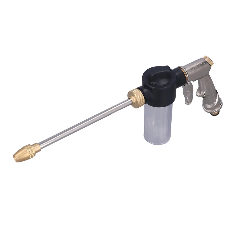 Feature: 1. ROTATABLE HOSE NOZZLE: Flexible and adjustable water flow from fine mist, moderate spray or jet stream by rotating the hose nozzle from left to right. Home garden hose pipe wand attachment with adjustable nozzles can meet every garden enthusiast's watering needs. 2. STURDY ENOUGH ZINC ALLOY BODY: The hose nozzle is developed and enhanced on the basis of the traditional plastic sprinkler nozzle. The adjustable sprayer head is made of brass and can be twisted for thousands of times. The zinc alloy body is sturdy enough to be used for a long time. 3. WITH HOSE COUPLER: The stainless steel washer rod is equipped with a brass standard garden hose coupler instead of the aluminum body, strong and durable, not easy to bend 4. EASIER CLEANING APPLICATIONS: Non corrosion high pressure sprayer and multiple spray patterns is suitable for garden watering and cleaning applications. Strong water pressure makes cleaning easier. Multiple spray modes make it a handy and practical tool. 5. WIDELY USED: High pressure water gun is suitable for garden watering, car washing, floor cleaning, pet washing, providing great convenience. Specification: Item Type: High Pressure Water Gun Material: Brass + zinc alloy + stainless steel Spraying Distance: Approx. 10 ~ 20meter / 32.8 ~ 65.6ft Foam Container Capacity: 100ml Applicable Hose: 1/2in Scope of Application: Garden watering, car washing, floor cleaning, pet washing Package List: 1 x Water Gun 1 x Container 1 x Spray Lance All the items will be dispatched within one business day by Airmail after the payment is clear. Most times you will receive your order within 10-30 business days after we transfer your package to the delivery company. We cannot guarantee the delivery timeframe if the post office has any unexpected delays due to holiday, weather, customs, or other conditions. Some countries like Russia, Brazil, or some European countries may take up to 50 days or longer for delivery. We appreciate your patience if you haven't received items in 30 days(Russian customers may need more patience by reason of the local delivery system and/or customs). If you are concerned in any way, please feel free to contact us via ebay message instead of leaving negative/neutral feedback or opening a dispute . We will do our best to solve any problem(resend or refund any missing item). Customs duty is obligation and liability of citizen s in your country, so buyer should be responsible for any tax and custom duty incurred. Generally, the delay or failure delivery is sometimes caused by the policy of different customs. 1. Our listing price includes the value of goods,packaging cost,and export taxes,not including international duties. 2. duties,taxes,and charges are not included in the item price or shipping fee. 3. T he duties are buyers' responsibility .Please check with your country's customs office determine what these additional costs will be prior to your purchase. 4. All disputes arising from the duties will be submitted to ebay for solution. 1. Any questions, pls. contact us via ebay message or email us. We will reply your message within 48 hours. If you do not receive our reply within 48 hours, pls. post a message again because sometimes our message system may block some emails. 2. If you are satisfied with our service, pls. kindly leave us a positive feedback and give us the Detailed Seller Rating with all " 5 " in very area 3. Our aim is to provide Level Customer Service, your recognition will encourage us greatly and serve you better. We strive to keep all our customers satisfy. We will do our up most to exceed your expectations in customer service, communication and dispatching of your orders.