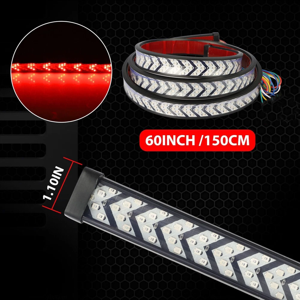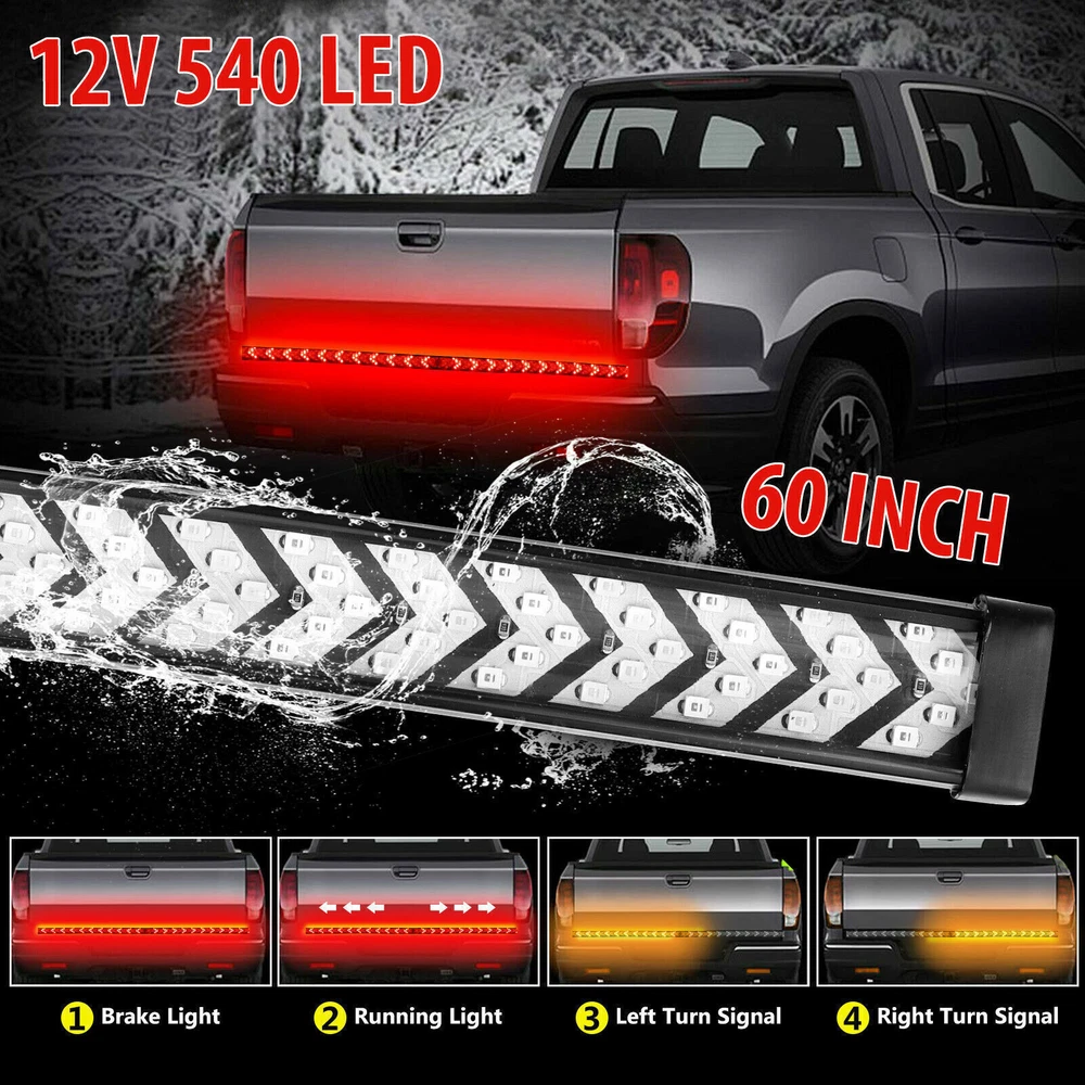Product Description Features: Full Functions: The arrow-style tailgate light features full functions of the brake. Universal Fitment for: Tailgate light with a working voltage of 12V DC, fits most vehicles. Specifications: Housing material: Fully Sealed Silicone Housing Shell material: PVC Voltage: DC 12V Light Source Power: 5W Current: 0.5A Luminous Flux: 500LM LED Quantity: 540 LEDs (270 Red+270 Yellow) LED Type: 2835 Light Color: Red/Yellow Red Light For: Driving Light, Brake Light (Will Not override Turn signal) Yellow Light For: Turn Signal Light (Will override brake light) Brake Light: Quick flash 3 times and stay on. (Red color) Waterproof Rate: IP68 Light Length: 60inch / approx. 150cm Package Included: 1 x 60"inch Truck Tailgate LED Light Strip About Us Payment Shipping Returns Contact Us Welcome to our store! Our aim is to offer our clients items with high quality and fast delivery, also our price will be reasonable. We supply many products including video game, health & beauty, phone accessories, computers accessories, camera & camcorder,car accessories, games, toys & hobbies, jewelry, antique & craftwork. Excellent customer service and a reliable credit standing is our tenet. We accept all verified payments from ebay. Orders will be shipped after receiving cleared payment. We ship most of our orders within 24 hours, and may up to 48 hours. If you want faster shipping way. Please contact us before making payment. Sometimes due to problems with our transportation company system, your shipping information may be delayed to update. We recommend that you try again after 3-4 days. If you still haven't checked the shipping information, you can contact us by ebay message. Always believe we can figure things out with communication, if it comes to return, the pacakge must be intact and the same as you receive. If you have any questions, please feel free to email our service specialists 24 Hours a Day, 7 Days a Week. We will reply you ASAP. Return/refund is accepted within 30 days after the buyer receives the item. NO exchange will be accepted after 30 days from the date when the item is received. Please contact us first before returning your product!!! If you have any questions, our Customer Service staffs welcome you to email us. We strive to answer all questions and resolve any problems as quickly as possible. We care about our valued customers, and will always try to help you. So if you have any problems, You can contact us 7*24, we will reply at the first time. About Us Welcome to our store! Our aim is to offer our clients items with high quality and fast delivery, also our price will be reasonable. We supply many products including video game, health & beauty, phone accessories, computers accessories, camera & camcorder,car accessories, games, toys & hobbies, jewelry, antique & craftwork. Excellent customer service and a reliable credit standing is our tenet. Payment We accept all verified payments from ebay. Orders will be shipped after receiving cleared payment. Shipping We ship most of our orders within 24 hours, and may up to 48 hours. If you want faster shipping way. Please contact us before making payment. Sometimes due to problems with our transportation company system, your shipping information may be delayed to update. We recommend that you try again after 3-4 days. If you still haven't checked the shipping information, you can contact us by ebay message. Returns Always believe we can figure things out with communication, if it comes to return, the pacakge must be intact and the same as you receive. If you have any questions, please feel free to email our service specialists 24 Hours a Day, 7 Days a Week. We will reply you ASAP. Return/refund is accepted within 30 days after the buyer receives the item. NO exchange will be accepted after 30 days from the date when the item is received. Please contact us first before returning your product!!! Contact Us If you have any questions, our Customer Service staffs welcome you to email us. We strive to answer all questions and resolve any problems as quickly as possible. We care about our valued customers, and will always try to help you. So if you have any problems, You can contact us 7*24, we will reply at the first time. powered by