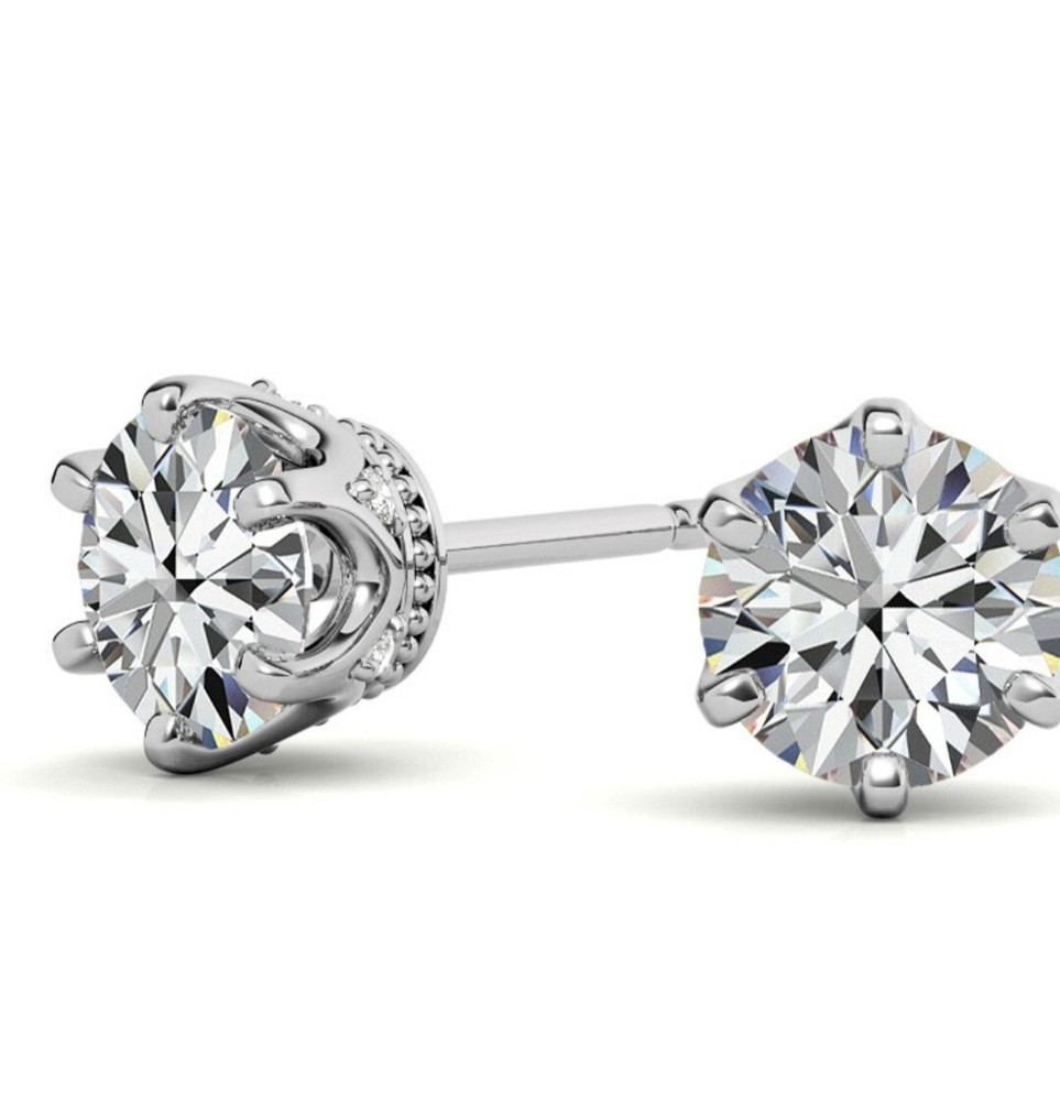 Gemstone Clarity Grade: Eye Clean Type: Earrings Metal: Silver Main Stone Length: 5 mm Main Stone: Moissanite Metal Purity: 925 Main Stone Shape: Round Country/Region of Manufacture: India Brand: Unbranded Style: Stud Main Stone Color: White/Colorless