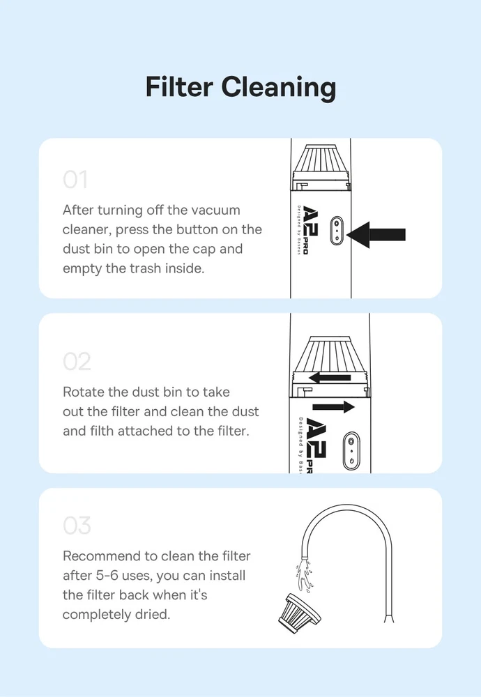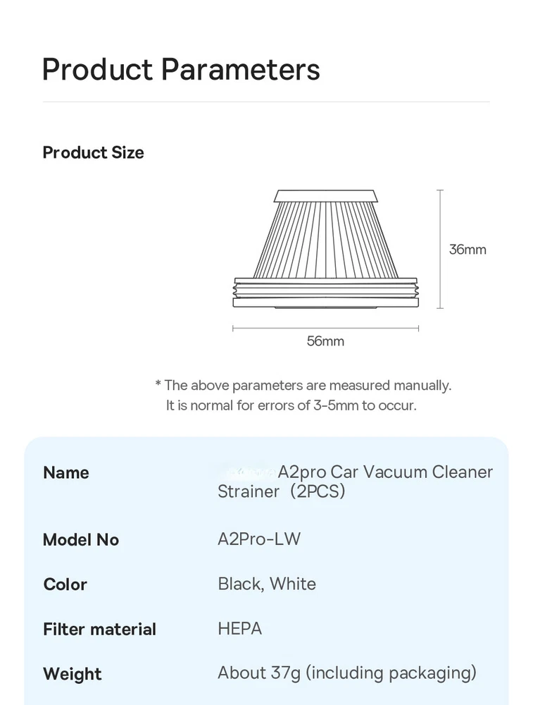 High Quality HEPA Filter Car Vacuum for Baseus A2 Pro Easy Cleaning
