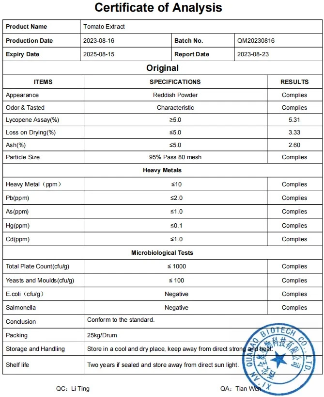 Factory supply lycopene powder high quality natural tomato extract 5% lycopene powder Product Name lycopene extract powder Apperance Reddish Powder Specification 5%