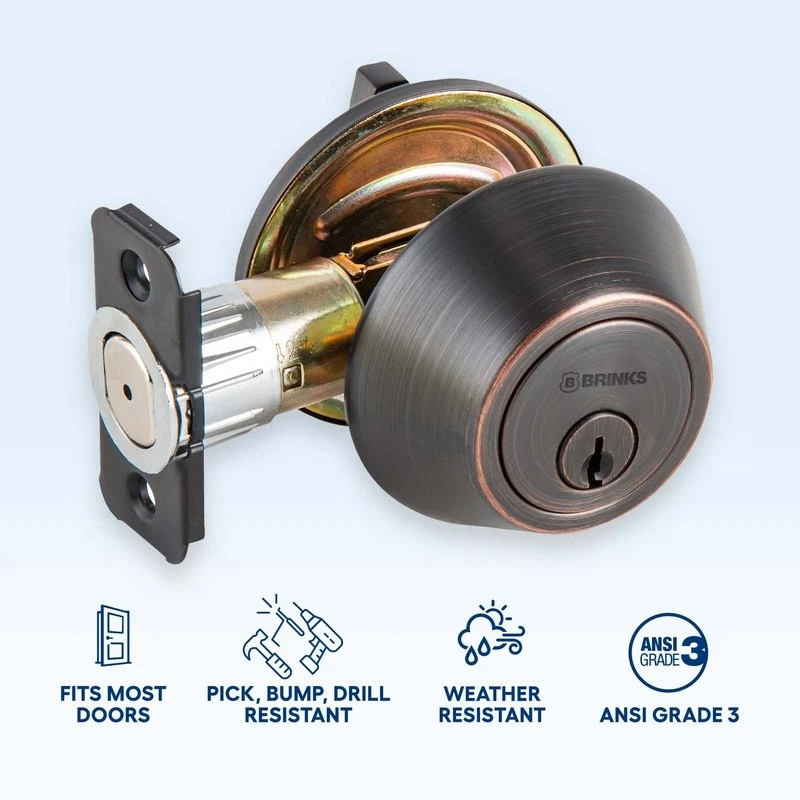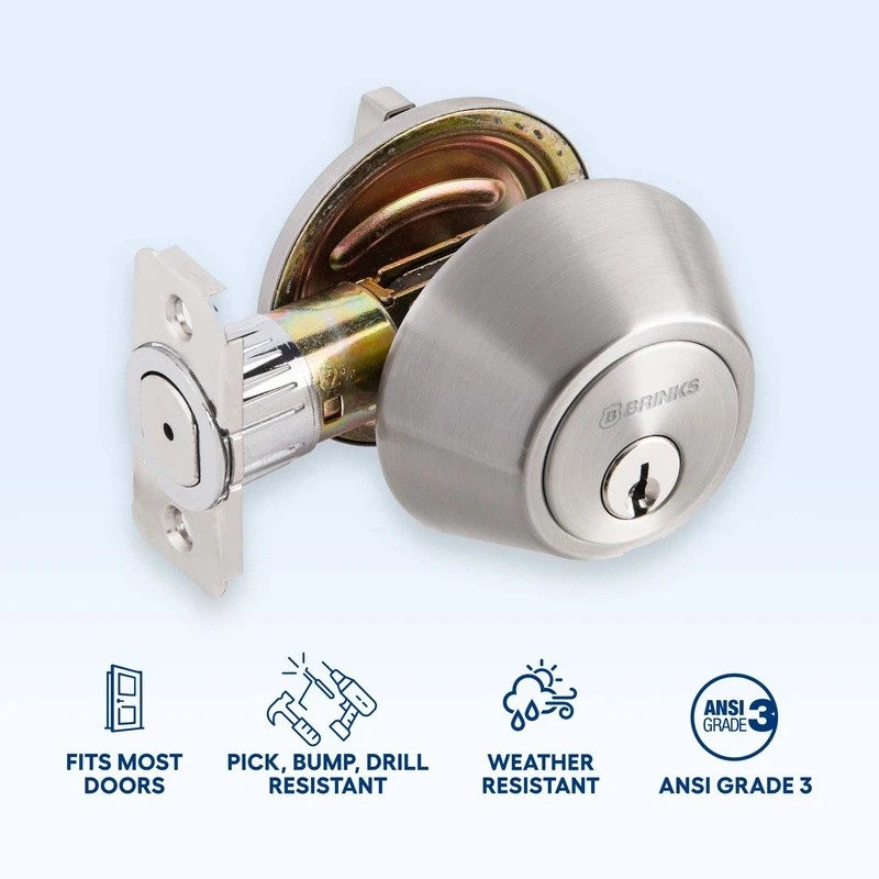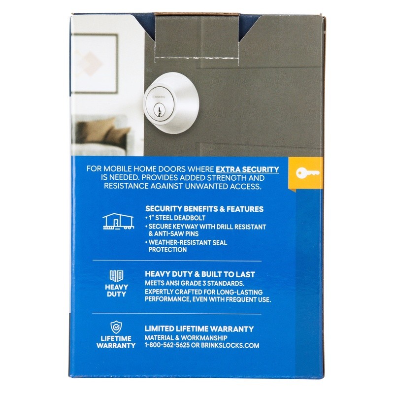 Wet Dog Food Chopped Ground Dinner Beef Canned Adult Nutrition 4 Pack 22oz Cans 15.08 USD Free shipping Professional Handheld Seed Spreader Bag Seeder 25lbs Capacity W/ Waterproof Bag 52.17 USD Free shipping 4-Person Clip & Camping Dome Tent Outdoor Portable Hiking Lightweight HOT 49.0 USD Free shipping Durable 5.70-8 8-Ply Trailer Tire Non-Radial Highway Trailer Replacement Tire US 48.43 USD Free shipping Large Jerky Gun W/ Stainless Steel Trigger 3 Attachments & 5 Spice Packets New 18.75 USD Free shipping Acrylic Lying Deer Christmas Tabletop Decor Holiday Centerpiece Elegant Design 24.78 USD Free shipping Sonic Bounce Ball High Bounce Outdoor Game Toy Kids Teens Party Favors New 11.74 USD Free shipping Ceramic Santa Boots Holiday Decoration Whimsical Charm Tabletop Display New 20.82 USD Free shipping Trailer Tail Light Guard Box LED Brake Turn Light Waterproof Heavy Duty Steel US 49.49 USD Free shipping Gingerbread Cake Cookie Mix Kosher Baking Mix Quick Easy Family Treats New 19.6 USD Free shipping 9-Shelf Adjustable Media Storage Rack DVD CD Blu-ray Game Cases Organizer New 49.06 USD Free shipping Quick Rolled Oats 10lb Pail 90 Servings Shelf Stable Emergency Survival Food New 25.73 USD Free shipping Rest assured with the peace of mind that Brink's door hardware is protecting your home. Operate the deadbolt by locking and unlocking with a key on the exterior and by the thumb turn on the interior. Brink's High Security Keyed Entry Single Cylinder Deadbolt for mobile homes provides maximum security with its pick, pry and bump resistant. It features a 1-inch deadbolt, drill resistant and anti-saw pins, and an anti-pry shield. The deadbolt fits most standard doors measuring 1-3/8" to 1-3/4"thick. Easy and reversible, install on left or right-handed doors. The 4-way adjustable latch fits 2-3/8 or 2-3/4 backsets. The keyed entry deadbolt meets ANSI Grade 2 standards. Brink's Single Cylinder Deadbolt's classic standard style is the perfect addition to any home whether you? re repairing or starting anew. Designed to provide security to your commercial or residential exterior knob, lever or handle set and is best used for front, back and side doors. A Trusted Name in Security since 1859 For use in mobile homes 4-way adjustable latch for 2-3/8" or 2-3/4" back-sets Fits all standard doors 1-3/8" to 1-3/4" thick High security Pick, bump and drill resistant Anti-pry shield Single cylinder Keyed on one side 1- inch deadbolt with steel anti-saw pin Includes a weather resistant seal ANSI grade 2 Easy to install with only a Phillips screwdriver You may also like Chopped Ground Dinner Wet Dog Food Chicken Beef Variety 13.2oz All Sizes New 24.92 USD Free shipping Universal Shooting Saddle Clamp Tripod Bipod Monopod W/ Ergonomic Locking Knob 51.98 USD Free shipping Turbo Scratcher Interactive Cat Toy Durable Scratching Pad W/ Spinning Ball New 19.27 USD Free shipping Molded Wood Toilet Seat STA-TITE Fastening Non-Tarnish Chrome Fits Round Bowls 34.67 USD Free shipping 11 Inch Softballs Pack of 4 Recreational Fastpitch Training Practice Softballs 19.96 USD Free shipping Buffalo Check Gingham Comforter Set Twin XL All-Season Bedding Soft Pillows New 42.88 USD Free shipping Universal Fragrance Oil Red Lava Citrus Aromatherapy Diffuser Oil 5 fl oz New 26.25 USD Free shipping Twin XL Quilt Set Floral Design Soft Microfiber Bedding W/ Pillow Sham New 57.18 USD Free shipping 3D Microfiber Comforter Set Cozy Lightweight Soft Bedding W/ Pillow Covers New 72.78 USD Free shipping Cushioned Vinyl Round Toilet Seat Soft Comfort Easy Install Eco-Friendly Durable 26.98 USD Free shipping Zero Sugar Iced Energy Drink 12 Cans Watermelon Twist Tropical Peach Lemonade US 31.22 USD Free shipping Luxury Fluffy Microfiber Plush Comforter Cover Cozy Bedding Set Easy Care New 46.78 USD Free shipping