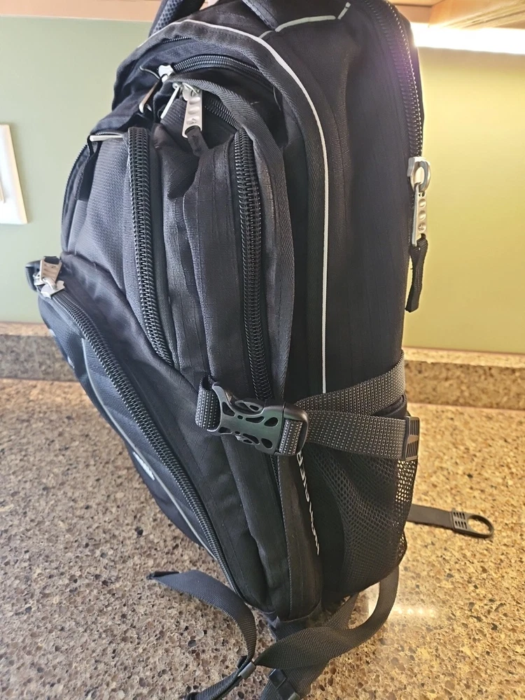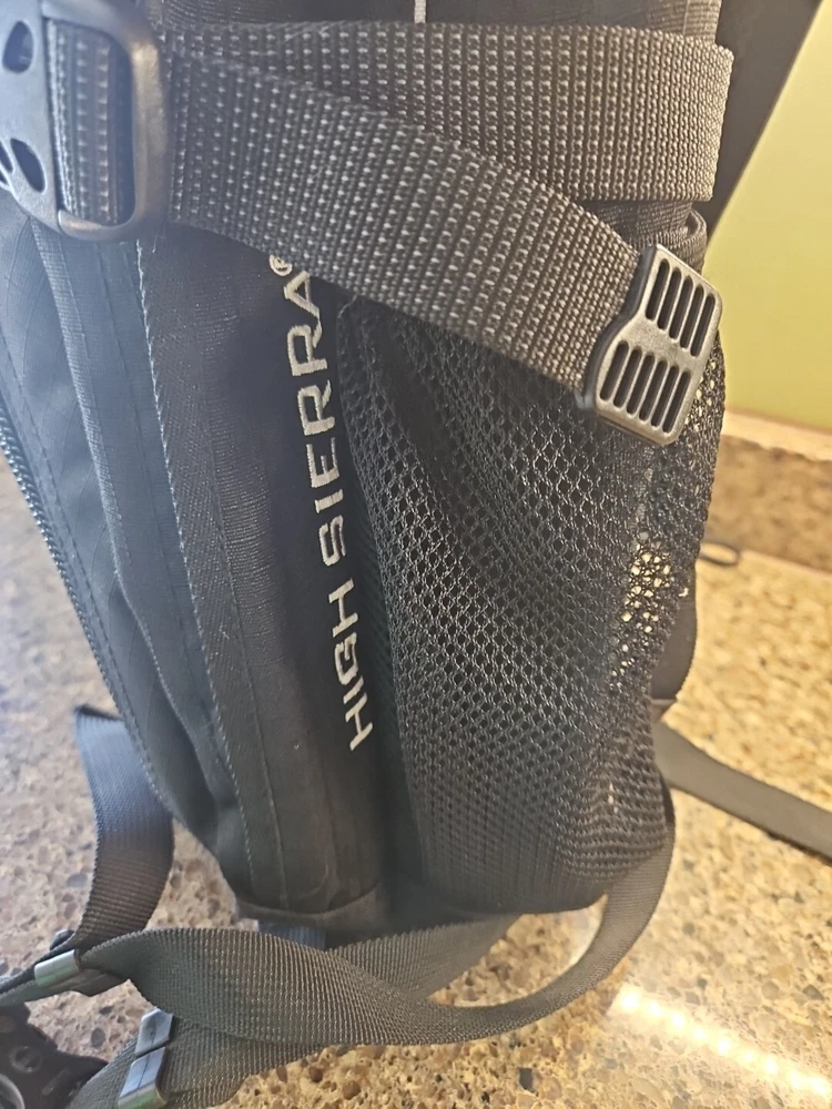 Care Instructions:Clean with Damp ClothBrand:High SierraFeatures:Back has Air Flow System, Cushion zone holds 16x11x1.8 ", Large mesh side pockets, Organizer zippered pockets pen holder and key fob, Padded, Ultra padded back panelSport/Activity:BackpackingClosure:ZipType:BackpackSeason:FallHidden Compartment:YesMaterial:Grid weave duralite , shiney waffle weaveColor:BlackDepartment:Unisex AdultsSize:LargeCapacity:2450 cubic inches