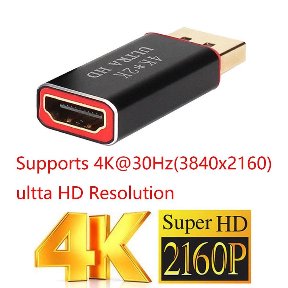 Product Description Features: 2160P Displayport to HDMI Adapter/Cable: Portable adapter connects a DisplayPort (DP, DP++, DisplayPort++) equipped laptop or desktop to an HDTV, monitor, or projector with HDMI input; An HDMI cable (sold separately) is required Transmits high-definition audio and video from your computer to an HDTV for video streaming or gaming; Connect and configure your monitor for an Extended Desktop or Mirrored Displays Supports 4K@30Hz (3840x2160) Ultra HD resolution and uncompressed digital 7.1, 5.1 or 2 audio channels Gold-plated connectors resist corrosion, provide durability and improve the signal transmission DisplayPort connector with latches provides a secure connection with a release button that must be depressed before unplugging Note: This is NOT USB Adapter / Signal Way ONLY carry from DP to HDMI Package Included: 1x High Speed Active 4k Displayport DP adapter Converter Shipping Returns Contact Us Payment 1. Items sent from US warehouse. 2. Receiving time = Processing time + Shipping time. 3. Processing Time: Around 1-2 business Days. 4. Shipping Time: 3-5 business day. It may have a little delay during some holiday (such as Christmas), any problem, please feel free to contact. Always believe we can figure things out with communication, if it comes to return, the pacakge must be intact and the same as you receive. If you have any questions, please feel free to email our service specialists 24 Hours a Day, 7 Days a Week. We will reply you ASAP. Return/refund is accepted within 30 days after the buyer receives the item. NO exchange will be accepted after 30 days from the date when the item is received. Please contact us first before returning your product!!! If you have any questions, our Customer Service staffs welcome you to email us. We strive to answer all questions and resolve any problems as quickly as possible. We care about our valued customers, and will always try to help you. So if you have any problems, You can contact us 7*24, we will reply at the first time. We accept all verified payments from ebay. Orders will be shipped after receiving cleared payment. Shipping 1. Items sent from US warehouse. 2. Receiving time = Processing time + Shipping time. 3. Processing Time: Around 1-2 business Days. 4. Shipping Time: 3-5 business day. It may have a little delay during some holiday (such as Christmas), any problem, please feel free to contact. Returns Always believe we can figure things out with communication, if it comes to return, the pacakge must be intact and the same as you receive. If you have any questions, please feel free to email our service specialists 24 Hours a Day, 7 Days a Week. We will reply you ASAP. Return/refund is accepted within 30 days after the buyer receives the item. NO exchange will be accepted after 30 days from the date when the item is received. Please contact us first before returning your product!!! Contact Us If you have any questions, our Customer Service staffs welcome you to email us. We strive to answer all questions and resolve any problems as quickly as possible. We care about our valued customers, and will always try to help you. So if you have any problems, You can contact us 7*24, we will reply at the first time. Payment We accept all verified payments from ebay. Orders will be shipped after receiving cleared payment. You may also like Brushed 60A ESC Waterproof Speed Control 2S-3S LiPo for 1/10 RC Cars Boat 18.89 USD 28-36.5mm 1.5mm Thick Flat Sapphire Watch Glass Crystal Replacement Repair Parts 8.59 USD 19.99 USD 10Pack Clear Battery Storage Case Protective Box Organizer for GoPro Hero 10 9 b 9.78 USD 19.99 USD High Quality Ebony Gold Plated Classical Guitar Chords Tuners 3R 3L Machine Head 23.89 USD 100PCS stem extenders/extensions for repairing Extending watch crown stems 12.78 USD 105Pcs Servo Plug Male Female JST JR Connector Crimp Pin Wire for RC Car Boat 13.89 USD powered by
