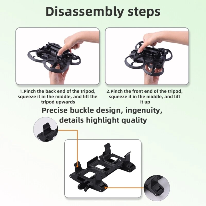 Features: For AVATA 2 Foldable landing gear is specially designed for Drones, which can effectively protect the Drones from collision and damage during takeoff and landing. Folding Easy to carry and store, save space. Lightweight highly strength and lightweighted extension leg. Quick Installation:Simple and easy to use, reduce operating time. Multi-functional bracket:Suitable for various scenes and environments Specifications: Product Folded Size: about 10.8x10.5x5.4cm/4.25x4.13x2.13in Unfold Size: about 10.8x7.2x3.8cm/4.25x2.83x1.5in For AVATA 2 Package Includes: 1PC Foldable Landing Gear note: Due to problem of lighting effect and shooting there might be tolerances in product, please understand. Please allow 0-2mm error due to manual measurement.